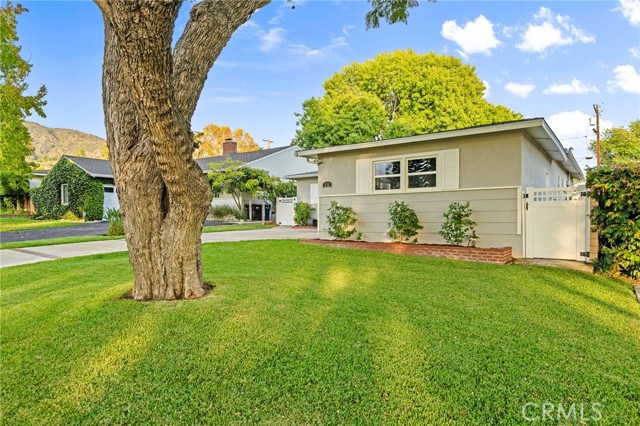 Welcome to this beautifully remodeled and updated single-story home located on a charming tree-lined street in desirable North Glendora. Offering 3 bedrooms, 2 bathrooms, and 1,716 sq. ft. of living space on a 7,461 sq. ft. flat lot, this home is just a short walk to the vibrant Glendora Village with its quaint shops and restaurants and lies within the highly acclaimed Glendora Unified School District. A welcoming brick front porch and brand-new front door set the tone for the stylish interior. Inside, an open living room with a custom gas fireplace with mantle flows seamlessly into the formal dining area. The stunning, fully remodeled open kitchen features new white cabinetry, quartz countertops, a center island with pendant lighting, stainless steel appliances (gas range, dishwasher, microwave drawer, and refrigerator), a large pantry, and convenient direct access to the attached garage. A separate family room offers additional living space, highlighted by a custom built-in entertainment center and a sliding door that opens to the covered outdoor patio. The private primary suite includes a spacious walk-in closet, slider to the backyard, and a beautifully updated bathroom with an oversized shower and dual-sink vanity. Two additional bedrooms with spacious closets and a full hallway bathroom complete the interior. Additional upgrades include: wood flooring throughout, crown molding, raised-panel interior doors, dual-pane windows and sliders, plantation shutters, recessed lighting, newer composition roof, copper plumbing, newer HVAC, home insulation, new water heater, an upgraded electrical panel, and electric car charger. The private backyard is designed for relaxation and recreation, featuring a covered patio, new hardscape, block walls, spacious lawn, raised planting beds, two storage sheds, and fruit trees (grapefruit, lemon, lime, and blackberry). A spacious front driveway and two-car attached garage with storage cabinets, laundry facilities, and direct access into home adds to the home’s convenience. An additional bonus is the rear alley access with a vinyl gate that provides extra parking and potential RV parking. You won’t want to miss this beautiful North Glendora home—move-in ready and truly exceptional!