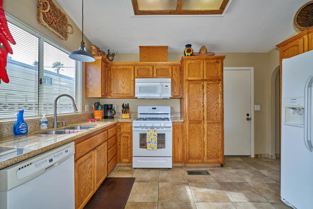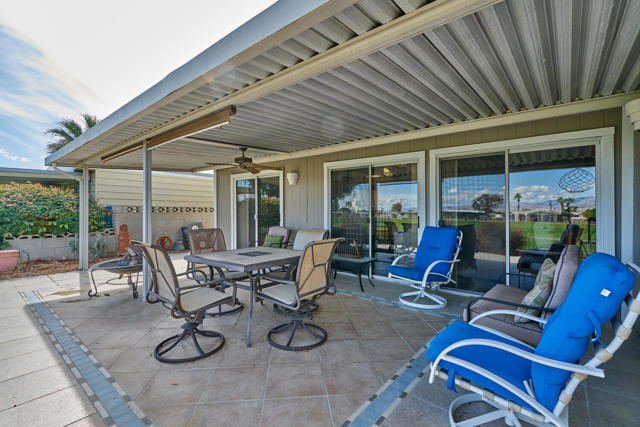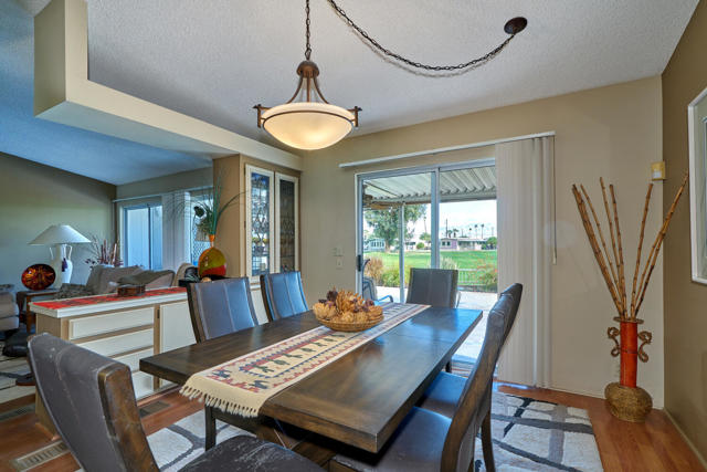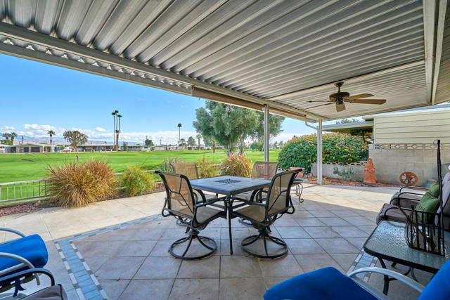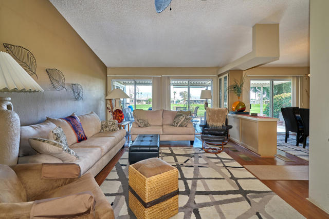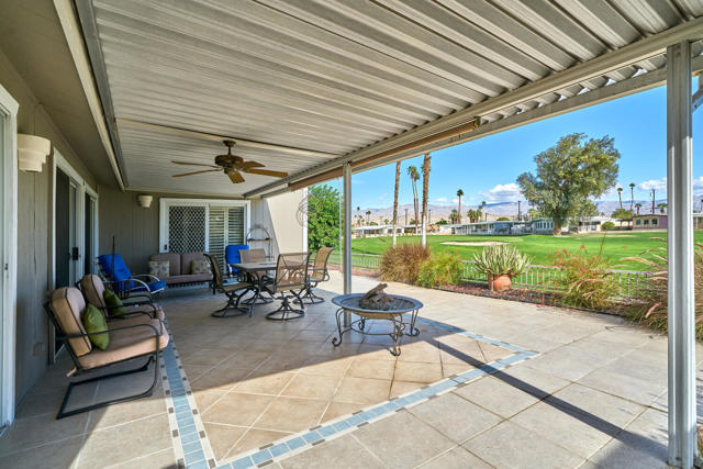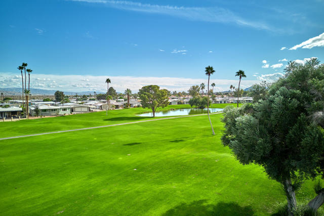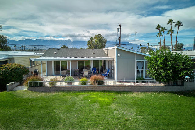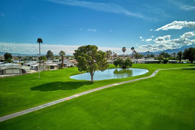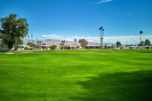 Enjoy exceptional golf-course living in this beautifully maintained newer triple-wide home located on the 14th fairway in the desirable Tri Palm Estates & Country Club! With sweeping views of the pond and lush green fairway--and just moments from the community clubhouse--this turnkey 2-bed, 2-bath residence offers comfort, convenience, and an inviting open layout. Step inside the private gated entry courtyard to a bright and spacious great room with large windows framing stunning golf-course scenery. The generous open floor plan flows easily into the dining area and kitchen, ideal for entertaining or relaxed everyday living. A thoughtfully designed split-bedroom layout places the owner's suite on its own side of the home for added privacy. Move-in ready and fully furnished, this home includes all appliances and sits on a permanent foundation with Form 433A, making financing simple.Tri Palm Estates is an active 55+ community where you OWN THE LAND and enjoy unlimited free golf on both the 18-hole and 9-hole par-3 courses. Additional amenities include swimming pools and spas, tennis, pickleball, basketball, shuffleboard, a putting green, and a clubhouse with a restaurant, bar, banquet hall, billiards, and free Wi-Fi. Conveniently located near Costco, Home Depot, Agua Caliente Rancho Mirage Casino, the Eisenhower Medical Campus, and the Acrisure Arena. With quick access to I-10, you're minutes from the best shopping, dining, and entertainment in Rancho Mirage, Palm Desert, and downtown Palm Springs.A rare opportunity to own a turnkey golf-course home in a premier active-adult community--don't miss it!