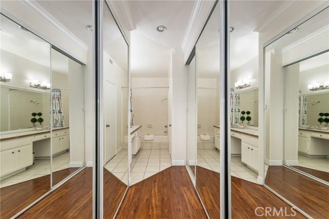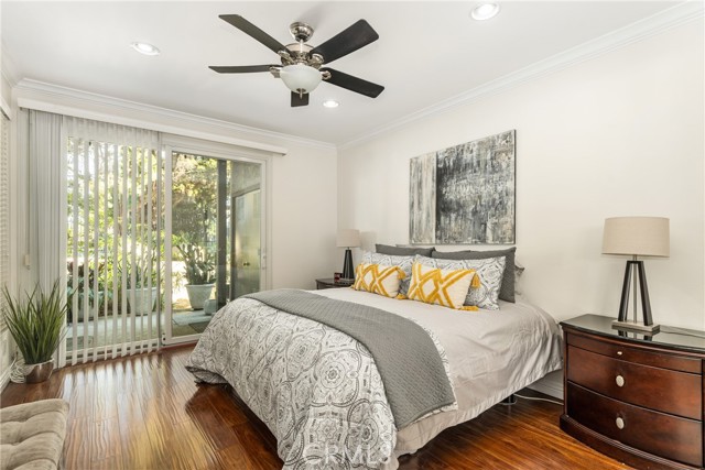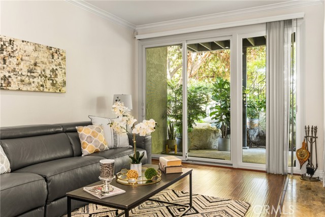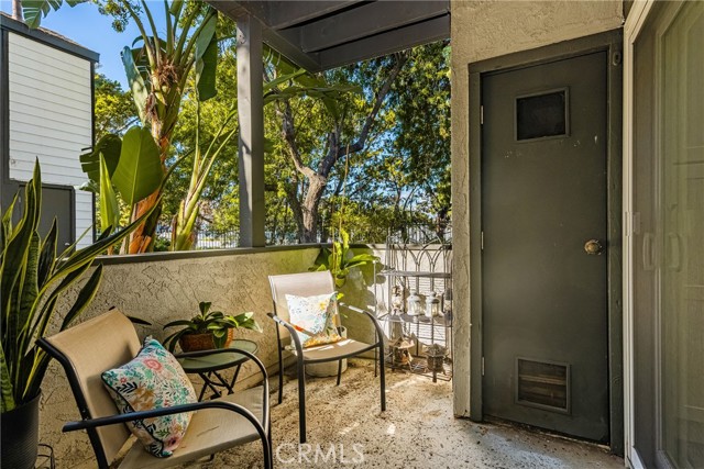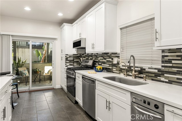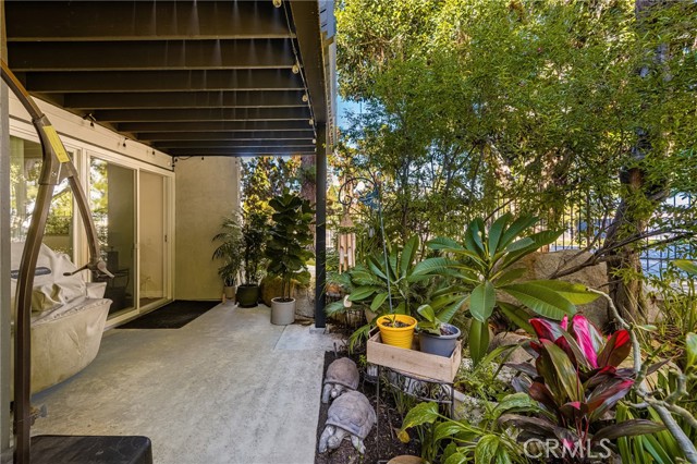 Highly renovated ground-level end unit in the prestigious gated community of Woodlake. This rare offering features two private patios and a premium, exceptionally private location. Step inside to an open floor plan with soaring ceilings, wide-plank laminate flooring, crown molding, recessed lighting, and a cozy fireplace. Brand-new, high-end Renewal by Andersen windows and sliding doors fill the home with natural light while enhancing energy efficiency. The remodeled kitchen includes stainless steel appliances, custom soft-close cabinetry, and elegant quartz countertops. A charming breakfast nook opens to a tranquil private patio—also accessible from the second bedroom—creating an ideal space to unwind. The beautiful primary bathroom offers a spacious vanity with abundant storage, a sunken tub and shower, and recessed lighting. The second bathroom is also a full bathroom with a tub and shower combo. The generous living room, with its impressive ceiling height, extends to a large private side patio overlooking a serene stream and waterfall—perfect for entertaining or everyday relaxation. A washer–dryer closet and an additional exterior storage closet provide exceptional convenience. This home includes one assigned carport, one assigned uncovered parking space adjacent to the building, and ample guest parking. The community is known for its lush landscaping, mature trees, ponds, waterfalls, and peaceful water features. HOA amenities include a pool, spa, exterior maintenance, water, trash, termite service, and exterior electricity. A beautifully updated home—thoughtfully designed and meticulously maintained. Located moments from world-renowned South Coast Plaza, the Segerstrom Center for the Arts, and centrally positioned within Orange County for easy access to major freeways, beaches, and shopping. This special home shows true pride of ownership—come see it before it slips away.