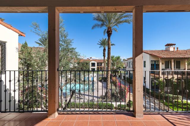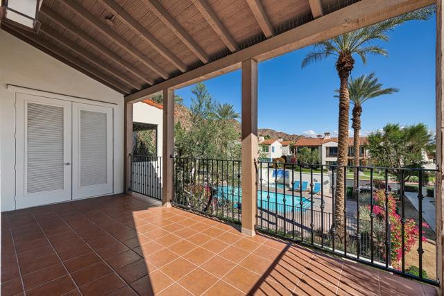 Pool and Mountain Views. Morning Sun from Both Balconies! New Paint. Exceptionally Clean. Upstairs 3BR/3BA Lock-Out Villa in the guard-gated community of Legacy Villas at La Quinta. Overlooks one of many salt-water pools & spas in the community. Enjoy your morning coffee or tea in the sun on one of two East-facing balconies. 3 gas-log fireplaces, 4 ceiling fans, and much much more. Offered Unfurnished, a blank canvas ready to welcome your inner Designer. Legacy Villas is an amenities-rich community with 12 salt-water pools, 11 spas, 19 fountains, and an 11,000+ sq. ft. Clubhouse featuring meeting rooms, a state-of-the-art fitness center, a date-palm hammock garden, and The Legacy Grille (open only to homeowners and guests). Note: Short-Term Rentals are allowed at Legacy Villas. This condo can be rented in its entirety, or as two units--a 2-BR Condo and a 1-BR Suite. So, your desert resort getaway can help pay for itself even while you are enjoying it. Come see why Legacy Villas is resort living at its Best!