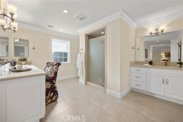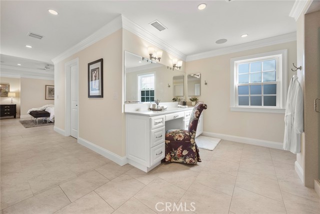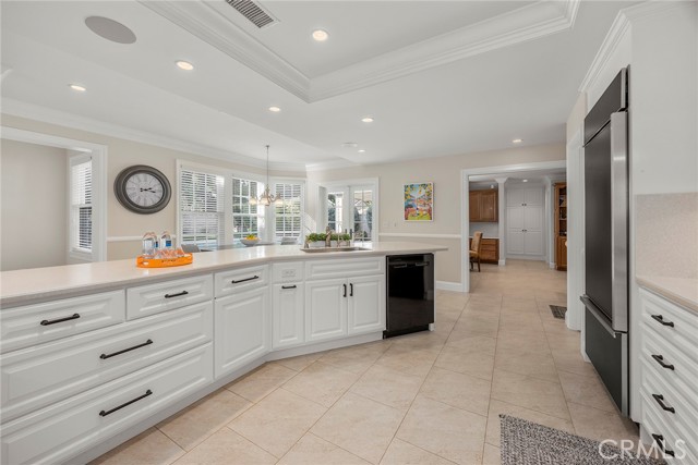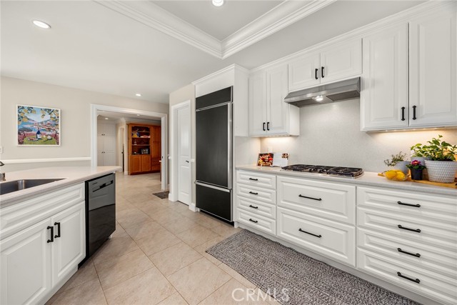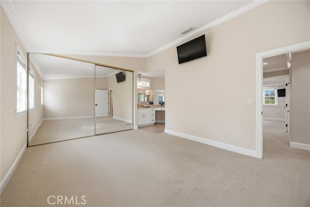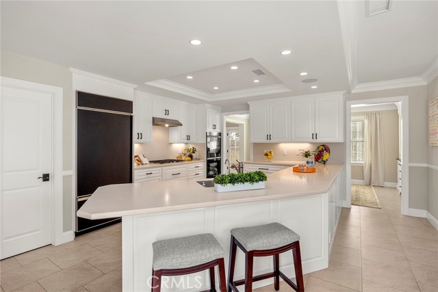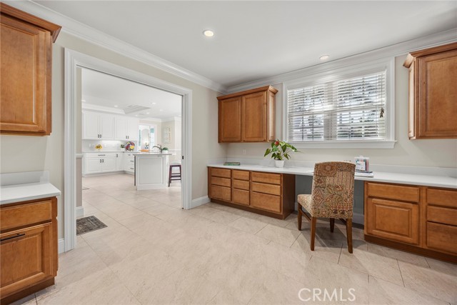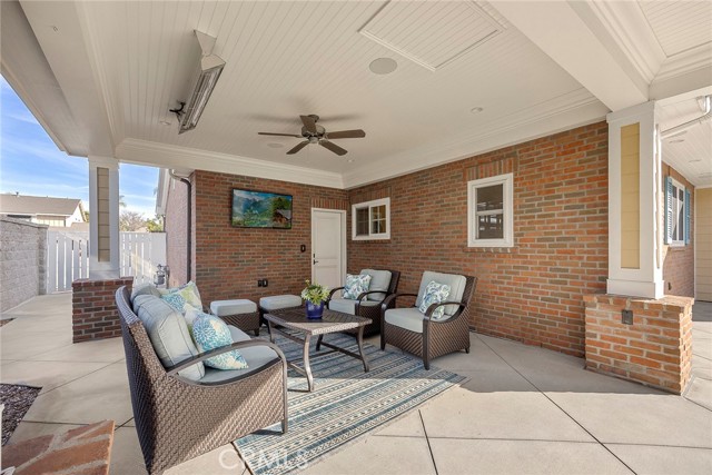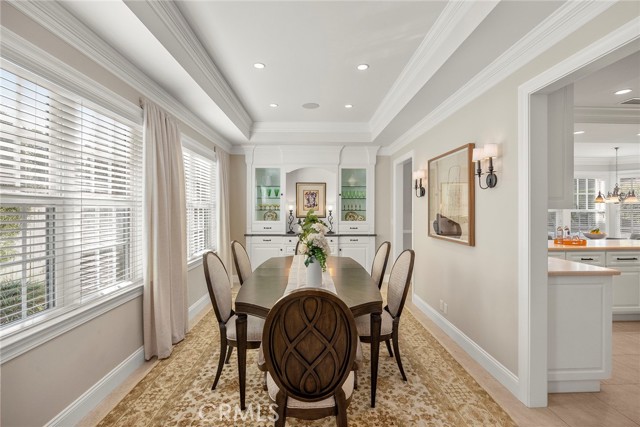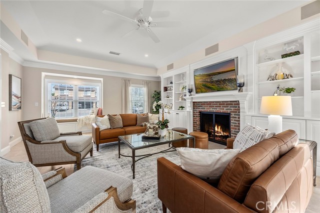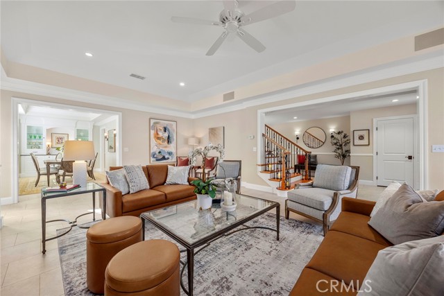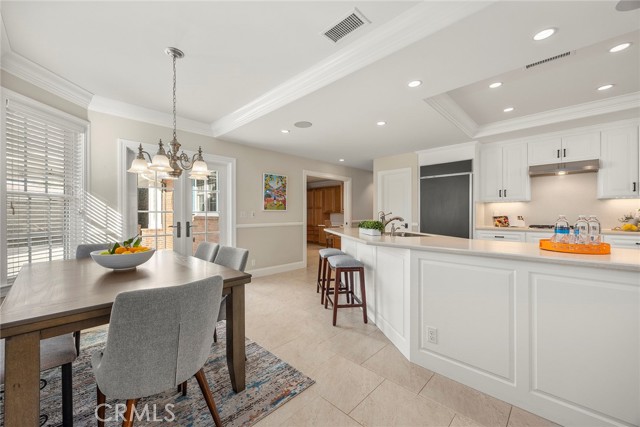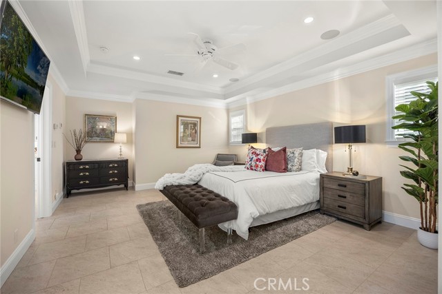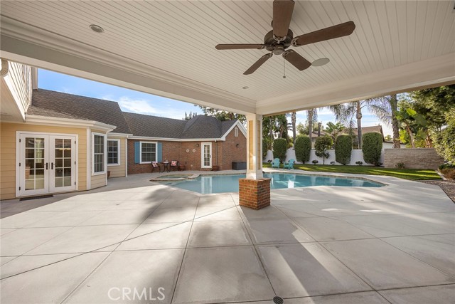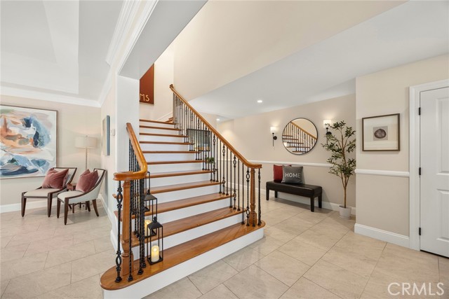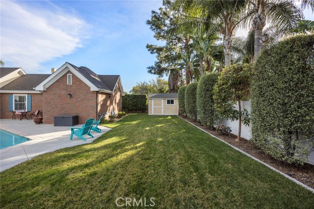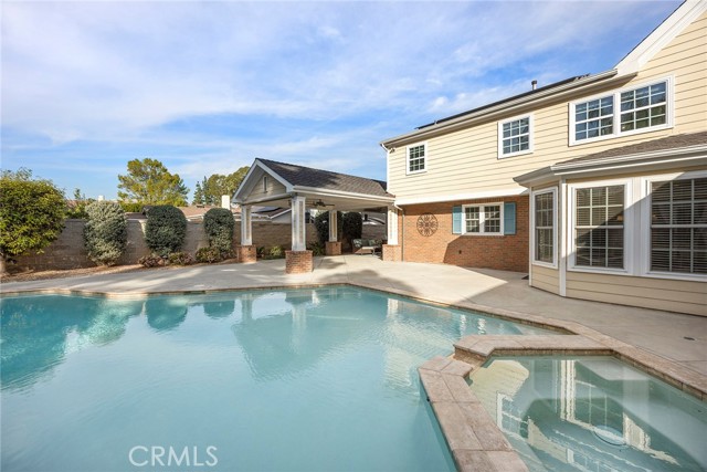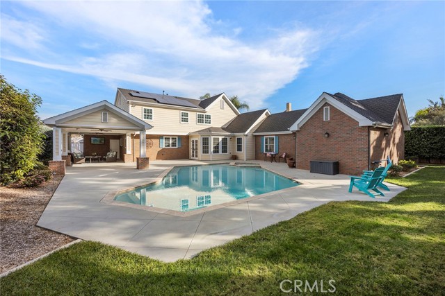 Fine, stately, and timeless, welcome home to a residence of true refinement and quality, nestled into a pride-of-ownership cul-de-sac. 4451 Rainbow Lane presents a rare opportunity in a desirable West Yorba Linda location for a discerning buyer to acquire a bespoke and flawless home. Thoughtfully expanded and remodeled down to the studs in 2013. A striking east-coast architecture greets you and sets the tone for what awaits inside. Classic finishes like brick cladding and wood siding combine to create a timeless and warm elevation. Stepping through a custom entry door, the foyer welcomes you inside and features large scale tile flooring, fine millwork including crown, base and stair banisters. A grand great room is beautifully proportioned with coffered ceilings, window seat and custom cabinets and shelving flanking a custom fireplace. Gracious entertaining will be a hallmark of the dining room with chandelier and a custom built-in buffet with glass fronted display cabinets. Fully remodeled and built with a high level of refinement, the kitchen features solid wood custom built cabinetry, solid surface Corian counters with full height backsplash. A suite of appliances include double ovens, a 5-burner gas cooktop and built-in refrigerator. A walk-in pantry, breakfast bar and a welcoming breakfast nook, that overlooks the pool and spa, complete the kitchen. Adjacent the kitchen is a fully customized home office/craft room, fully finished with dual built-in desks, an ideal space for working from home or for homework after school. Sitting at the rear of the home, the MAIN FLOOR primary suite is a sanctuary space with fine millwork and light fixtures. The en-suite bathroom is remarkably spacious featuring a walk-in shower, dual sinks and two walk in closets, one that is approx. 13 ft by 8 ft. A convenient ‘pool’ bathroom has exterior access leading directly to the pool. Upstairs three comfortably sized secondary bedrooms share access to a fully remodeled hall bathroom with dual sink vanity. The original (now 2nd) primary suite features vaulted ceilings and a fully remodeled en-suite bathroom. Outside the best of California living awaits with custom pool and spa, lush lawn and an inviting covered patio with heaters and ceiling fans, also piped for a gas BBQ. Dual HVAC systems, water softener (owned), media closet with iPad control and security system. A 31 panel, solar panel system PPA has been fully pre-paid through 2035, producing on average 13.8 KwH annually.