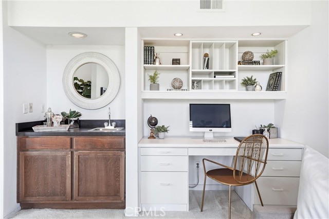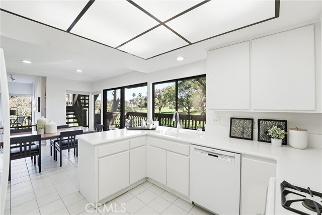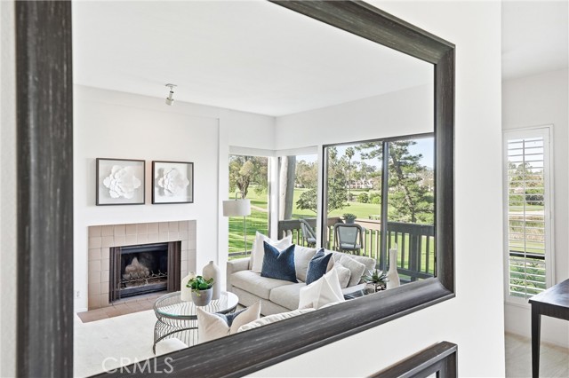 WOW. The door opens, and your attention is immediately drawn outward to an unexpected view of the 12th fairway that sets the tone for the entire home. Large windows frame the surrounding greenery, creating a sense of openness and calm throughout the space. The kitchen faces the dining area and features updated Corian countertops, generous cabinetry, and an extended eating bar ideal for everyday living. Just beyond, a gentle step down leads to the living room, where high ceilings, a fireplace, and sliding doors open to one of two private patios overlooking the fairway. Crisp white finishes keep the interior feeling clean and timeless, while a separate den with built-in shelving and a sink/bar provides flexible space for a home office, reading room, or creative retreat. It’s the kind of home where the pace naturally slows, the outdoors feels ever-present, and the view becomes part of daily life. Rancho San Jaoquin offers 2 pools, spas, club house, EV chargers and dues include trash and water. Easy access to shopping, recreation, Mason Park, highways, UCI and Newport Beach, this is truly a one of a kind home that is sure to please.