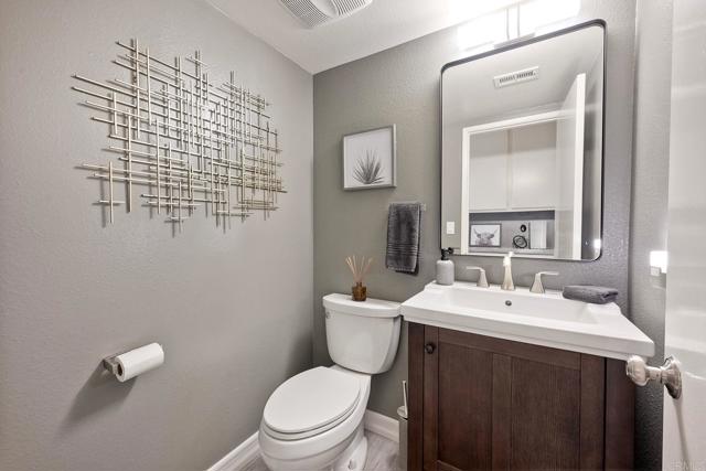 A playful yet refined coastal retreat just five miles from the beach in Oceanside - San Diego’s newest vacation destination. Designed to live like a single story, this beautifully remodeled home blends everyday comfort with a relaxed, getaway-inspired vibe. From the moment you arrive, custom drought-tolerant landscaping and designer details set the tone for effortless coastal living. The expansive backyard is an entertainer’s dream, featuring a sparkling pool and spa finished in mini pebble tec, a large covered patio with skylights, and ample space to relax, gather, or expand. No HOA adds flexibility and freedom, while a very private primary suite on the entry level enhances livability and privacy. Completely remodeled from top to bottom, this move-in-ready home showcases luxury vinyl plank flooring throughout, newer windows and sliders, and high-end wooden shutters that elevate both style and function. The spacious kitchen features granite counters and opens seamlessly to the great room and dining area, accented by tasteful tile feature walls and designer finishes. Two and a half custom baths include gorgeous tile floors, custom vanities with granite counters, and soft-close drawers. An entry-level bedroom currently staged as an office offers flexible use as a dining room or bedroom, while upstairs guest bedrooms feature vaulted ceilings and a cozy loft ideal for reading or relaxing. Major system upgrades include a roof replaced in 2023, newer furnace, and newer water heater, offering peace of mind for years to come. Additional highlights include a whole-house fan including the garage, abundant attic storage, and a three-car garage with stylish accent doors. Ideally located near shopping, beautiful beaches, and easy freeway access, this immaculate home delivers a lifestyle that feels like a vacation while remaining perfectly suited for full-time living.
