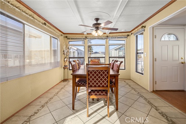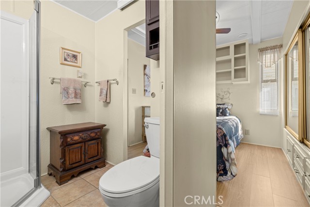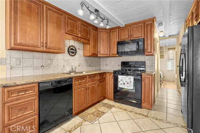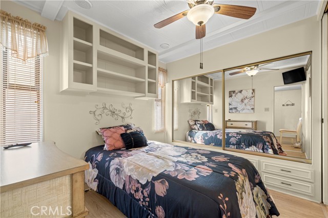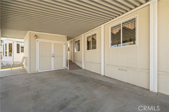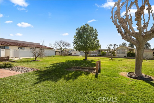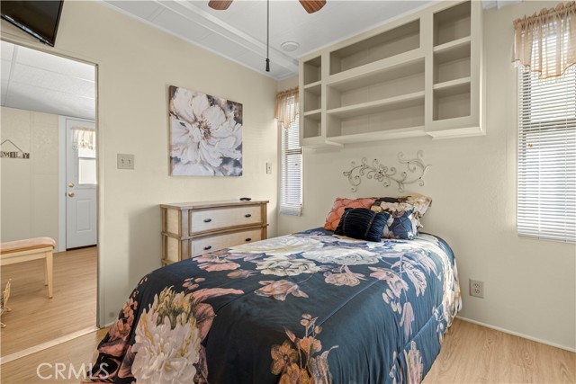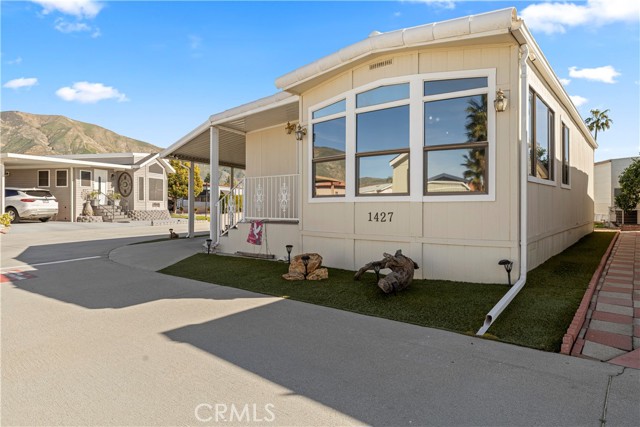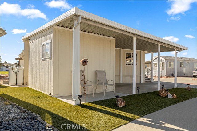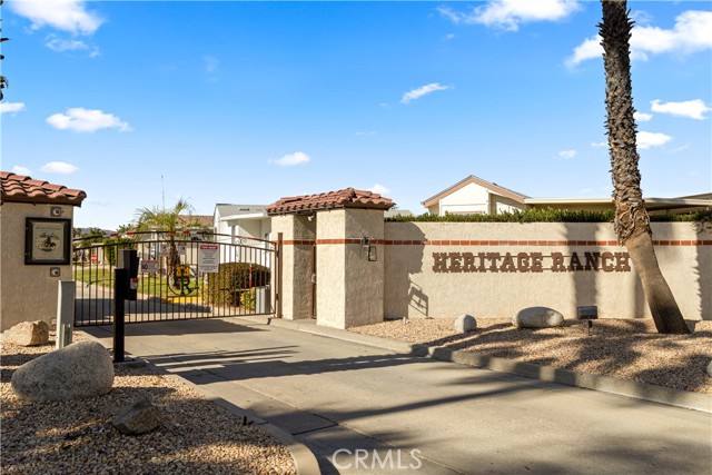 Welcome to Heritage Ranch, a gated 55+ active senior community offering comfort, convenience, and resort-style amenities. This charming 1985 park model with a thoughtfully designed addition offers approximately 700 sq ft of well-utilized living space with stunning views of the San Jacinto Mountains. The upgraded kitchen features updated cabinetry, granite countertops, stainless steel appliances and sink, and a stylish tiled backsplash, complemented by hardwood and tile flooring throughout and ceiling fans for year-round comfort. The spacious bathroom includes an enlarged corner shower, and the home is equipped with a tankless water heater. Additional highlights include an indoor laundry room with storage, handicap ramp access, and an oversized storage shed providing ample space for tools, hobbies, or seasonal items. Washer, dryer, and furniture are included, making this home truly move-in ready. Heritage Ranch offers amenities galore, including a clubhouse, gym, indoor spa, outdoor pool, recreation area, and library, creating an ideal setting for an active and social lifestyle. Enjoy low taxes and a low HOA of $218/month, which includes water, sewer, trash, basic cable, and internet. Conveniently located near shopping and medical offices, this home is the perfect blend of comfort, accessibility, and community.