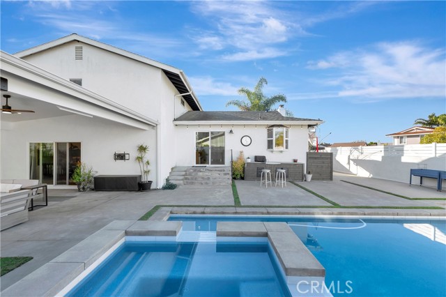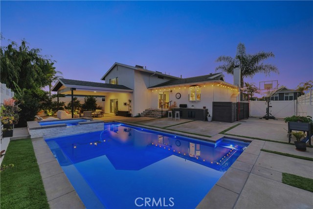 Prime location in the desirable Marine View Tract! This thoughtfully updated home offers a seamless combination of comfort, flexibility, and indoor-outdoor living. A welcoming Dutch door opens to a bright, open floor plan ideal for both entertaining and everyday life. The refreshed kitchen showcases a generous island with built-in outlets, modern countertops, stainless-steel appliances, abundant custom cabinetry, and an adjacent dining space perfect for gatherings. The home features four bedrooms, three bathrooms, plus a flexible bonus room (5th Bedroom) suited for a home office, workout area, or playroom. Additional highlights include a sun-filled living room anchored by a cozy fireplace, and an indoor laundry room with sink and storage. The private backyard is designed for enjoyment, offering a resort-style pool and spa, custom fire pit, and an expansive covered patio enhanced with tasteful lighting—ideal for relaxing or entertaining year-round. Set on an oversized lot, the property also includes gated RV and boat parking with power, water, and sewer hookups, along with solar panels for improved energy efficiency. Conveniently located near top schools, parks, shopping, and dining, this home delivers an exceptional opportunity to enjoy space, comfort, and a coveted neighborhood setting.