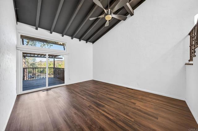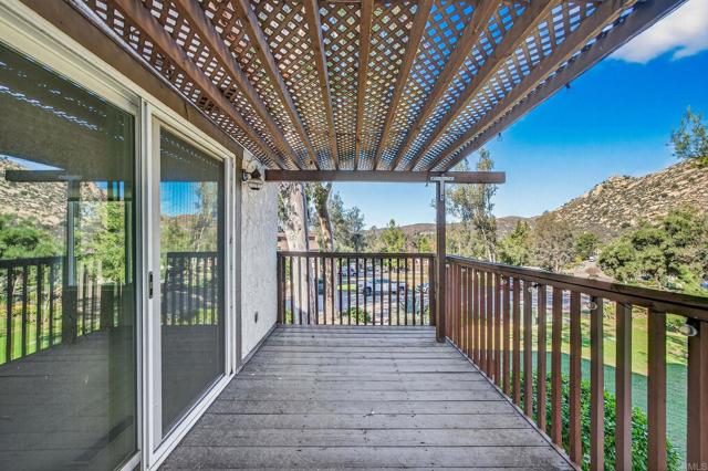 Welcome to this spacious and beautifully updated condo located in a quiet, rural setting within San Diego County Estates This large 3-bedroom, 2-bath residence offers a highly updated kitchen showcases quartz countertops and stainless-steel appliances, perfect for everyday living and entertaining alike. This home features a highly desirable downstairs primary suite complete with two generous closets. Vaulted ceilings with exposed beam work enhance the open and airy feel, while hard-surface wood flooring adds warmth and durability throughout. Enjoy indoor-outdoor living with two private balconies offering peaceful mountain views. Additional highlights include two covered carport spaces and solar. Community amenities include swimming pools, relaxing spas, tennis courts, and convenient access to local golf facilities, providing a resort-style lifestyle in a serene setting. Welcome home!!!