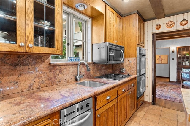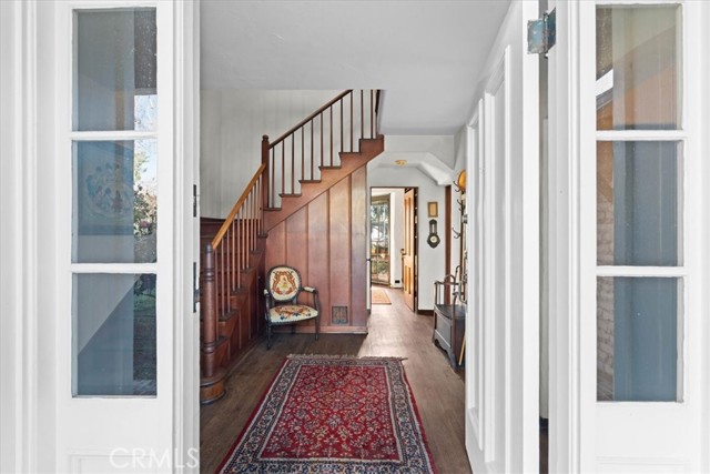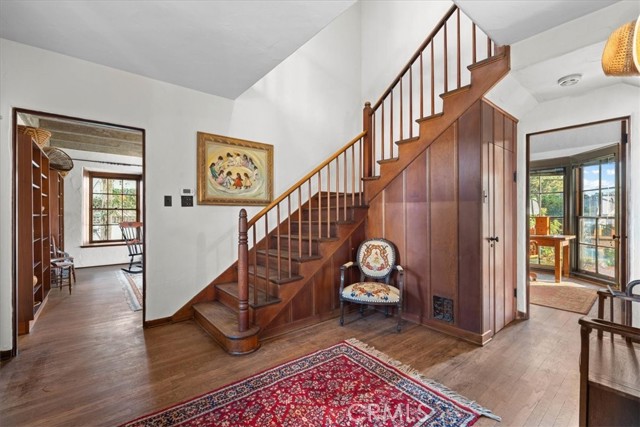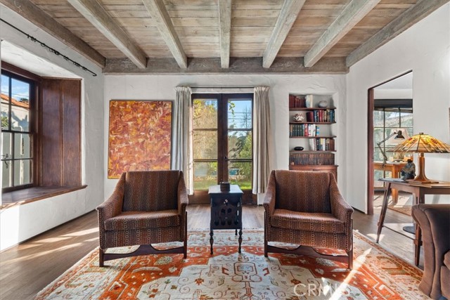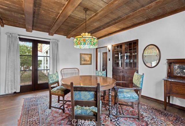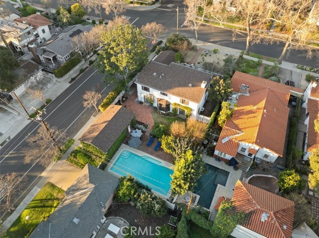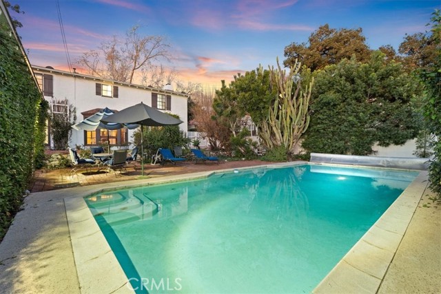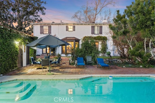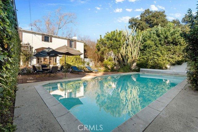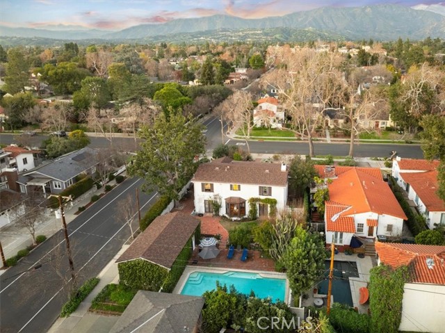 Architecturally significant Monterey Revival residence known as the “Monterey Miniature,” thoughtfully designed in 1928 by noted architect Helen Wren for Beth and Elliot Lincoln. A rare and irreplaceable Claremont classic, rich in history and timeless design. Ideally situated in the heart of the Claremont Village—affectionately known as the “City of Trees and PhDs”—this home enjoys a premier location between Los Angeles and Palm Springs. Just moments to Village boutiques, art galleries, fine dining, professional offices, and the world-renowned Claremont Colleges. Set on a private corner lot, the estate features a welcoming front courtyard and a gated side yard with a separate entrance. The grounds include water-tolerant landscaping, a sparkling in-ground pool, and a detached two-car garage with pool house—offering exceptional privacy and charm. The beautifully upgraded foyer introduces refined elegance and old-world character. The living room showcases exposed wood-beamed ceilings, Spanish-inspired detailing, and a warm fireplace. The main level also includes a den or office with pool views, a downstairs bedroom, and a full bath. The formal dining room features wood-beam ceilings and a built-in china hutch. The kitchen blends function and character with a center island and dual sinks, stainless steel appliances, butcher block countertops, trash compactor, custom windows, built-in wood cabinetry, and Spanish-accented walls. Upstairs offers a primary suite with fireplace and balcony access, an additional large bedroom, and a remodeled bath with Talavera-style tile. Additional highlights include a 237 sq.ft basement ideal for wine cellular, storage or bonus use, exterior storm shutters, repiped plumbing, and thoughtful updates that respect the home’s architectural integrity. This is not just a home—it is a statement. A one-of-a-kind opportunity to own one of Claremont’s most distinctive and beloved estates.some photos / rooms may be digitally altered or digitally staged.