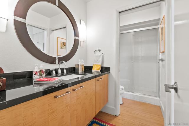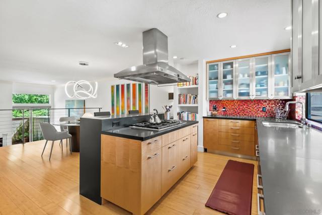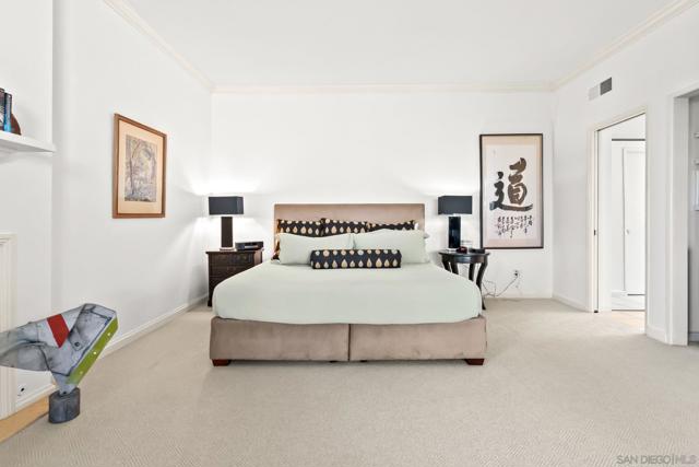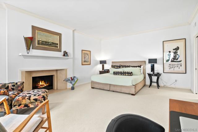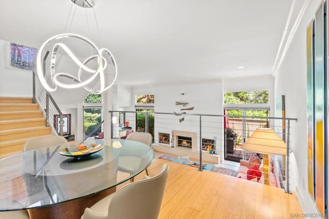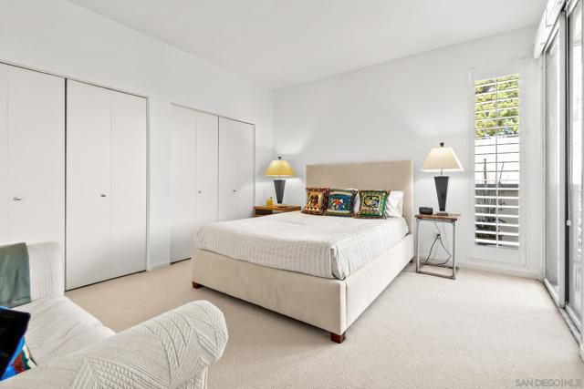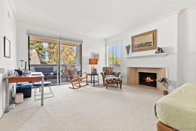 Absolutely gorgeous, light-filled, and perfectly positioned in one of the best locations in the complex, this La Jolla Shores townhome is quietly tucked away offering privacy, peace, and a serene setting. Extensively remodeled with over $250,000 in high-quality upgrades, the residence is ideally positioned in the coveted northwestern corner of the community, blending natural light, coastal charm, and an elevated sense of living. The home features 3 bedrooms and 3 en-suite bathrooms, including a highly sought-after main-level bedroom perfect for guests or a private home office. The dramatic living room impresses with soaring ceilings, abundant natural light, a fireplace, and bamboo flooring throughout the main living areas, while central air conditioning ensures year-round comfort. The beautifully remodeled kitchen combines style and functionality, showcasing stainless steel appliances, granite countertops, custom cabinetry, and oversized pantry drawers. Just off the living room, an enclosed patio creates a seamless indoor-outdoor flow ideal for entertaining. The spacious primary suite is a true retreat, featuring a wrap-around balcony, fireplace, walk-in closets, and a spa-inspired bath complete with a soaking tub, dual vanities, and a separate shower. An upstairs guest suite offers its own private bath and balcony access. Additional highlights include a 2-car attached garage with built-in cabinetry. Residents enjoy resort-style amenities including lush grounds, a private tennis court, and a sparkling pool—all just moments from La Jolla Shores beach, dining, and