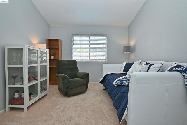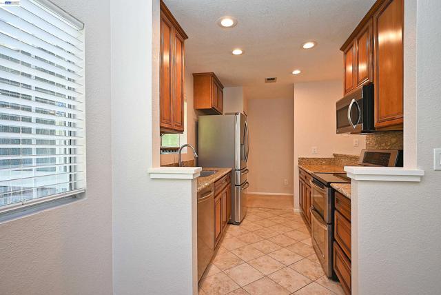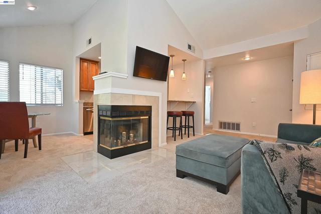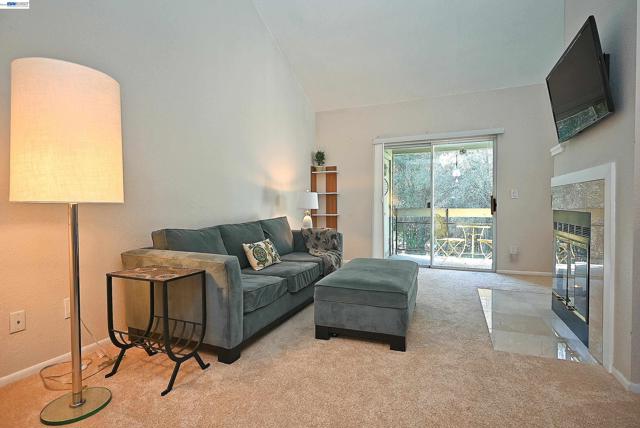 Exceptional top-floor residence in Pleasanton’s highly sought-after Canyon Meadows community, ideally located near the entrance of the complex with beautiful greenbelt and tree views. Just steps from the pool, tennis courts, clubhouse and guest parking, this home offers both convenience and a serene setting. With only eight stairs to the front door, this light-filled 2-bedroom, 2-bath home features soaring vaulted ceilings, no neighbors above and abundant windows that bring in natural light and views from nearly every room. Two private balconies provide peaceful outdoor retreats off the living area and primary suite. The kitchen was remodeled with granite countertops, stainless steel appliances and updated cabinetry. The spacious primary bedroom offers a walk-in closet and private ensuite bathroom. Additional highlights include in-unit washer and dryer, newer A/C (2017), newer furnace (2023), and a detached one-car garage. Canyon Meadows offers resort-style amenities including pools, spa, fitness center, tennis courts, basketball, volleyball, clubhouse, and expansive greenbelts. HOA includes water and waste management. Located within the highly regarded Pleasanton school district and close to BART, shopping, dining, and major commute routes.
