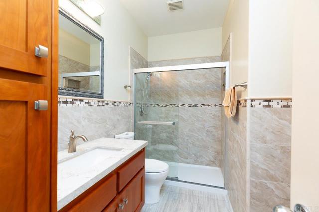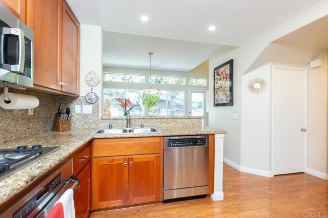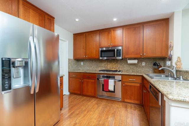 Welcome to 12642 Springbrook Dr in the highly desirable community of Poway. This beautifully upgraded 3-bedroom, 3-bathroom home offers a highly functional floor plan, including a full bedroom and full bathroom on the first floor—ideal for guests, multigenerational living, or a private home office setup. Step inside to find highly upgraded flooring throughout and a remodeled kitchen designed to impress, featuring modern finishes, updated cabinetry, and quality appliances. The open living spaces provide great natural light and a comfortable flow for both everyday living and entertaining. Upstairs, you’ll find spacious secondary bedrooms and a well-appointed primary suite with its own private bath. A brand-new HVAC system adds peace of mind and energy efficiency year-round. Enjoy added privacy with no rear neighbors, creating a quiet and comfortable outdoor setting. The 2-car garage provides ample parking and storage space. Conveniently located near top-rated Poway schools, parks, shopping, and dining, this move-in ready home offers upgrades, flexibility, and privacy in one of North County’s most sought-after areas.