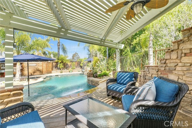 Stunning Entertainer’s Dream Home in the Heart of Temecula Welcome to this beautifully upgraded 5-bedroom, 2.5-bathroom home nestled on a quiet cul-de-sac in one of Temecula’s most established and desirable neighborhoods. Offering space, style, and exceptional indoor-outdoor living, this home truly has it all. Step inside to discover a thoughtfully updated interior featuring granite kitchen countertops, stainless steel appliances, upgraded tile flooring, and laminate flooring throughout. All windows have been replaced with vinyl dual-pane windows for enhanced energy efficiency and comfort. Additional upgrades include new faucets, modern light fixtures, and a built-in surround sound system with ceiling speakers—perfect for everyday living and entertaining. The backyard is a true private oasis designed for relaxation and unforgettable gatherings. Enjoy the pebble-tech saltwater pool and separate spa, accented by serene waterfalls and a timed water feature system. Multiple sitting and lounge areas create inviting spaces to relax or entertain, while a putting green adds a fun and unique recreational touch. The outdoor experience is completed with a built-in BBQ, tiki bar, and the distinctive “Gentleman Jack Lounge,” all under a large patio cover that provides shade and comfort year-round. Thoughtful landscaping and extensive drainage enhance both beauty and functionality, and a commercial-grade fish aquarium system adds a truly custom element. Additional highlights include RV access, low HOA fees and property taxes and an ideal location just minutes from shopping and dining at Promenade Temecula, the award-winning wineries of Temecula Valley Wine Country, and world-class entertainment at Pechanga Resort Casino. This exceptional home blends comfort, extensive upgrades, and resort-style amenities in a prime location—an incredible opportunity to own a true Temecula retreat.