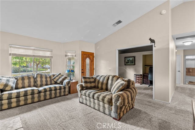 CHARMING SINGLE STORY HOME ON A LARGE LOT IN HIGHLY DESIRED CIRCLE J RANCH... Beautiful single story home located on a mature tree lined street in quiet, and centrally located Circle J Ranch. This 3 bedroom model is currently set up as 2 bedrooms and an office. The Master suite offers a large walk in closet, and slider to the large, private backyard. The kitchen features ample counter and cabinet space, and also has another slider to the backyard. This home features a separate laundry room, inside, just off the 2 car garage. The backyard boasts a huge pool sized lot w/ patio cover, and pad for spa or sauna. All of this with NO HOA, and NO MELLO ROOS... Call today for your private showing! This home can be shown 7 days a week, so contact us today.