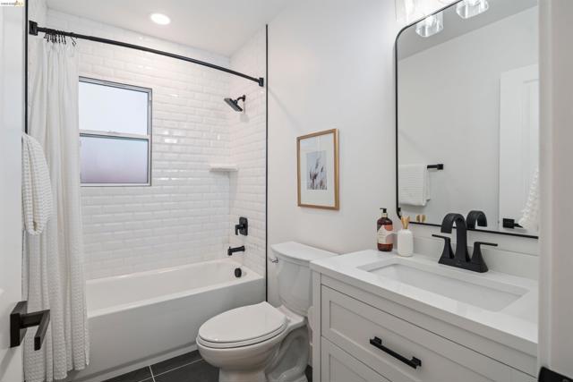 Completely reimagined from the studs up, 846 Adams delivers two turnkey residences steps from Solano Avenue. The 3bd/2ba main home features a designer kitchen with quartz countertops, decorative tile backsplash, stainless steel appliances, and a breakfast bar that opens to a living room anchored by a black shiplap accent wall and linear electric fireplace. Both en-suite and hall bathrooms showcase patterned tile walk-in showers, quartz vanities with wood cabinetry. The primary suite includes a luxurious double-vanity en-suite bath. Mini-split heating and cooling in every room ensures year-round comfort. Out back, a permitted detached 1bd/1ba ADU with its own private side-yard entrance offers a full kitchen, bedroom with a closet, laundry hook-ups, a tiled walk-in shower, and a dedicated mini-split system—ideal for rental income*, multigenerational living, or a home office. A shared gravel courtyard connects both residences. All-new systems added in 2025 & 2026, including plumbing, electrical, roof, and stucco. Walk to Solano Avenue shops, restaurants, and top-rated Albany schools**. Two homes, one lot, endless possibilities.