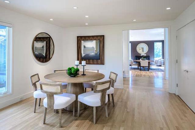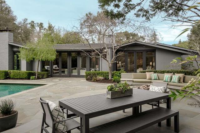 Lower Hillsborough Mid-Century Modern Masterpiece. Walls of glass, soaring ceilings, and resort-caliber grounds define this iconic single-level estate set on a mostly level .716-acre (31,192± sf) lot along one of Hillsboroughs most coveted streets. The 4,670± sf residence showcases a gallery-style entry leading to dramatic living and dining rooms with limestone and granite fireplaces, expansive scale, and seamless indoor-outdoor flow through tall framed glass doors. A perfectly positioned powder room off the main entry offers convenient outdoor access. The stylish chefs kitchen features sleek cabinetry, Wolf 6-burner range with double ovens and grill, 48 Sub-Zero refrigerator, Miele wall oven and microwave, two Bosch dishwashers, and an oversized island with prep sink. An adjacent family room with built-in desks opens to an Ipe deck. The luxurious primary suite opens to the pool, with a spa-inspired bath and heated floors. Three additional ensuite bedrooms provide privacy and comfort. A newly constructed 1,095± sf ADU (2022) with separate address includes full kitchen, living areas, AC, and heated floors. Lush grounds offer pool, spa, pool house with Nano doors, fire pit with built in seating, outdoor kitchen with Lynx appliances, lawn area, solar, EV- outlet, mud/laundry room.