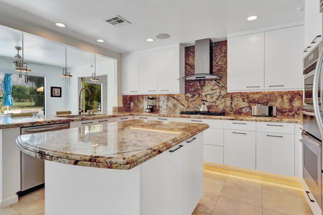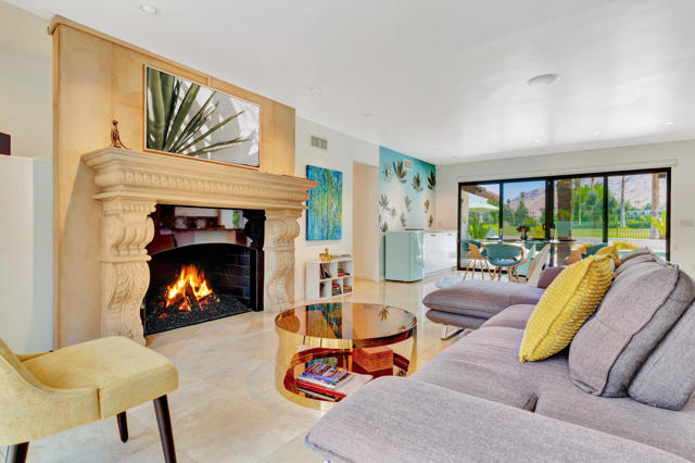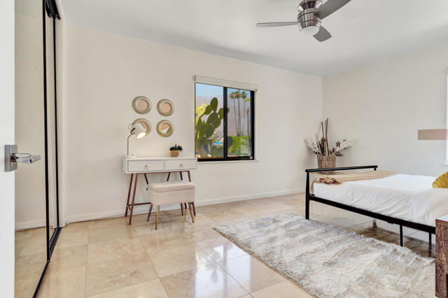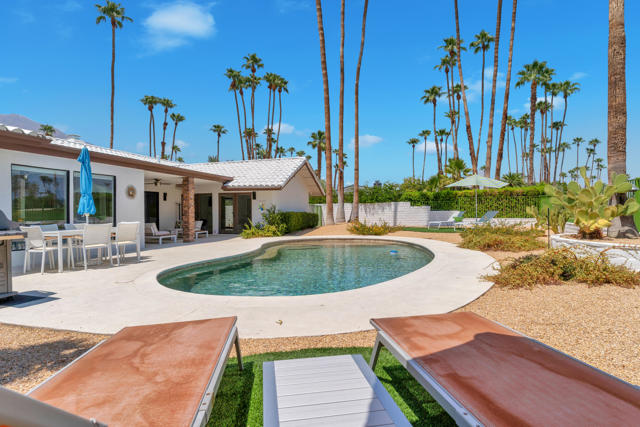 Nestled on an expansive, low-maintenance desert-landscaped lot in the coveted Indian Canyons neighborhood, this home captures spectacular east and west vistas--from the dramatic San Jacinto Mountains to the west to the wide-open fairway views of holes one and two and the Murray Canyons to the east. Over the years, the property has seen significant upgrades (please refer to the attached FAQ sheet for details). A secured, gated entrance welcomes you into a private front courtyard. Inside, a custom glass front door opens to a formal entry, offering a stunning first impression to all who visit. Stylishly appointed and tastefully furnished, this home is being sold turnkey, ready for immediate enjoyment. Designed with effortless flow, the open-concept layout features a spacious living and dining area. The living room showcases a generous gas fireplace, direct access to the gated courtyard, and breathtaking views in both directions. The kitchen is equipped with granite countertops, stainless steel appliances, an island, and convenient access to the sunny breakfast nook. The first of two primary suites occupies the south wing of the home and enjoys soaring vaulted ceilings, abundant natural light, panoramic backyard and golf course views, and a walk-in closet. The en-suite bath offers a large tiled shower, dual vanities, and additional fairway views. The second primary suite is situated on the north side, complete with recessed lighting, a built-in sound system, and direct access to the covered patio and backyard. This exceptional property is offered fully furnished--just bring your toothbrush and start living the Indian Canyons lifestyle. No HOA dues!
