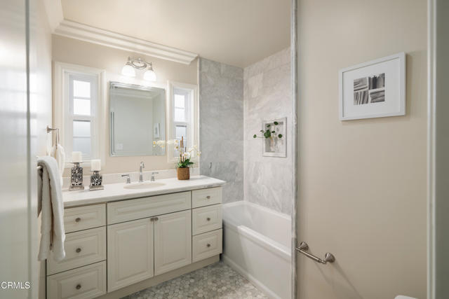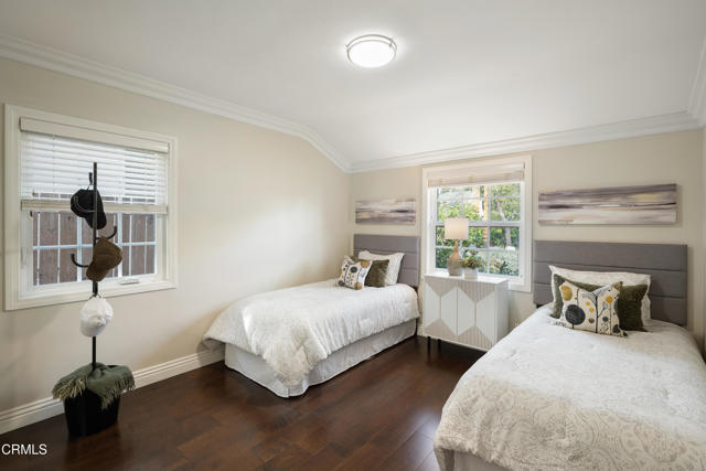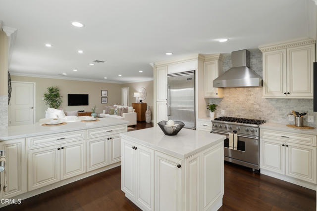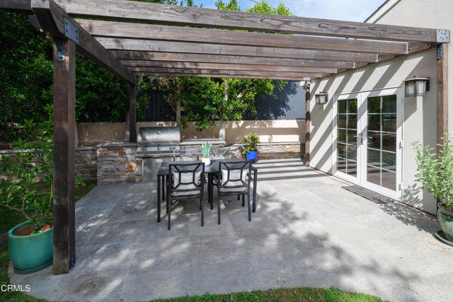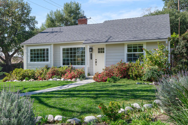 Ideally located in the sought-after foothills of La Canada Flintridge, this charming corner-lot home combines timeless appeal with thoughtful updates. Impeccable curb appeal welcomes you with manicured landscaping, a mature shade tree complete with a classic rope swing & a winding flagstone pathway leading to the covered front porch. Inside, hardwood flooring & crown molding set a warm tone in the light-filled living room. A corner gas fireplace with an oversized mantel anchors the space, while recessed lighting & a large picture window overlook the lush front yard. The open layout flows into the dining room, highlighted by another expansive window & a stylish designer chandelier, perfect for gatherings both intimate & grand. The remodeled kitchen is a true centerpiece, featuring stone countertops, a custom-tiled backsplash, recessed lighting, crown molding & a premium stainless Viking Professional appliance suite, including a six-burner range & oven, range hood, refrigerator, freezer & dishwasher. The kitchen opens seamlessly to a spacious family room with recessed lighting & crown molding, creating an ideal setting for everyday living & entertaining. Direct access to the attached two-car garage & additional storage enhances convenience. The bedroom wing offers comfort & privacy. Two secondary bedrooms feature hardwood floors, crown molding, dual-pane windows & mirrored closet doors. A full hallway bathroom includes a deep soaking tub & shower combination, an oversized stone-topped vanity & elegant finishes. A whole-house fan provides added efficiency. A dedicated laundry area with a side-by-side washer & dryer is tucked behind louvered doors. A versatile third bedroom, currently used as an office, offers generous closet space & a sliding door leading to the backyard. At the rear of the home, the primary suite serves as a serene retreat with crown molding, a ceiling fan & French doors opening to the patio. The ensuite bath is beautifully updated with basket-weave tile flooring, a dual-sink stone vanity, recessed lighting & a custom glass-enclosed shower with bench seating & tile extending to the ceiling. Outdoors, the backyard is designed for both relaxation & entertaining, featuring a pergola-covered patio with a built-in barbecue island, a grassy yard & raised garden beds. Located in a wonderful neighborhood close to excellent schools, local dining, & shopping, this La Canada home offers comfort, quality, and lifestyle in one exceptional setting.