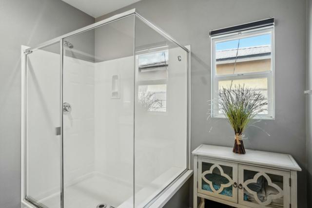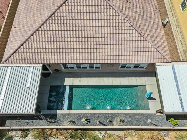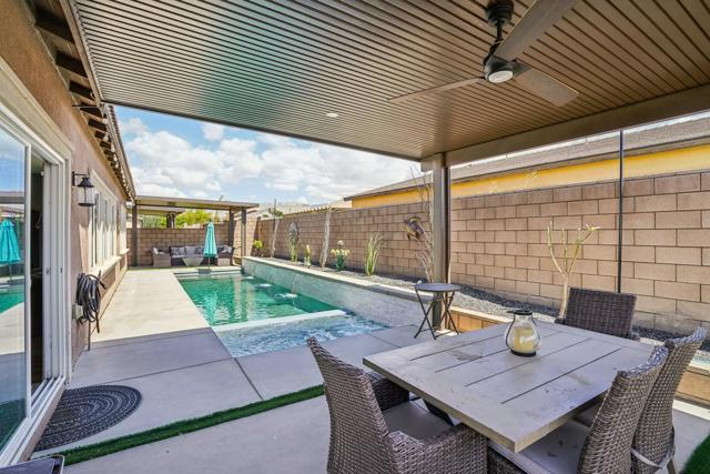 Welcome to your dream home in the Hacienda gated community! This stunning 4-bedroom, 3-bath pool home features an open-concept living room. The kitchen is a chef's delight, featuring a large prep island with exquisite granite countertops, perfect for entertaining guests or enjoying casual family meals. The flexibility of a spacious flex room, ideal for a formal dining area or versatile space.Experience luxury underfoot with the porcelain plank tile providing both durability and a touch of sophistication. The four bedrooms offer ample space for relaxation and privacy, making it an ideal retreat for every member of the familyGet ready for a backyard oasis that will take your breath away. A newly built saltwater, pebble-tec pool and spa beckon you to unwind and enjoy the ultimate in leisure. The pool features three shear waterfalls and top-of-the-line Jandy pool equipment. Experience the convenience of controlling the pool equipment and lighting remotely with a phone app, ensuring your backyard paradise is always at your fingertips. The outdoor living space is designed for year-round enjoyment, featuring 2 covered patio equipped with ceiling fans and canned lighting. Artificial turf accents add a touch of greenery without the maintenance, while a gas fire pit sets the stage for cozy evenings.