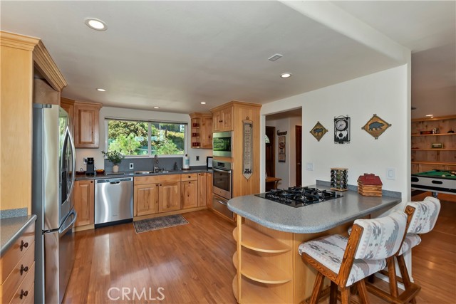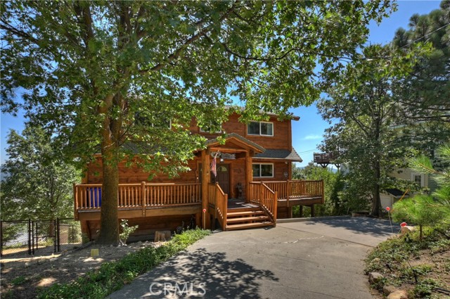 LAKEVIEW, check. BELOW MARKET PRICE, check. SUCCESSFUL STR/AirBnB History, check. Look no further -- THIS IS IT and the seller is MOTIVATED (recent MAJOR price reduction). Wow! ...will be your jaw dropping reaction when you enter this wonderful turnkey A-frame/prow mountain motif home - with LAKE RIGHTS - and see your unobstructed lake view and panoramic ridgetop views, including nearby Snow Valley and San Gorgonio, all from your deck chairs and firepit. This lovely home, with a great "cabin feel" and near level entry, exudes relaxation and fun, from the nearly 1,500 SF of lake view deck space, to the game room with a two in one game table with billiards, and table tennis. Don’t forget the relaxing Jacuzzi spa! The kitchen features hickory cabinets, recently updated stainless steel appliances, and a new LG refrigerator. Relax in the spacious A-frame/prow great room, with terrific lake and mountain views, and enjoy a cozy fire in your Regency airtight wood burning stove. The large master bedroom offers breathtaking views, deck and spa access, a gas insert fireplace for easy fires late at night, and plenty of built-in dresser space, along with a spacious walk-in closet. The master bath boasts a dual sink, a separate walk-in shower and jetted tub, as well as heated floor tiles and a heated towel rack! The additional two large bedrooms upstairs offer more lake views and quiet sitting areas. The main level game room could easily be converted to a fourth bedroom. All three bathrooms have charming, designer touches including mountain themed backsplashes and painted sinks. Be comfortable year-round with central heat and air conditioning. The home also has a laundry and work room, and a concrete and insulated basement for plentiful storage. This home is a successful, high demand STR - producing a strong income flow - with all 5 star guest reviews and a highly rated AirBnB host. This turnkey, unobstructed lake view house at this price point is a rare find on the mountain. Seller is motivated, as evident by the below market pricing. Come see this gem now, and start enjoying the lake lifestyle at its finest!