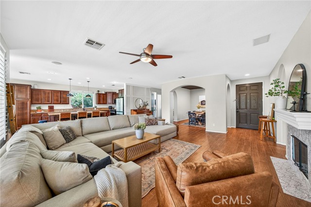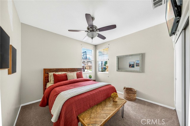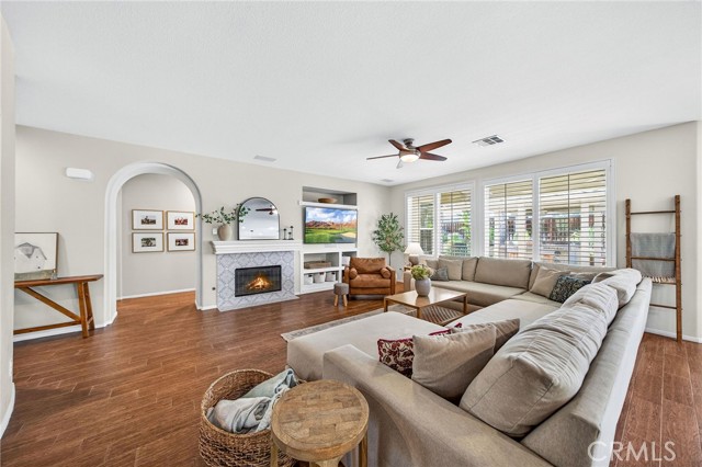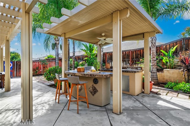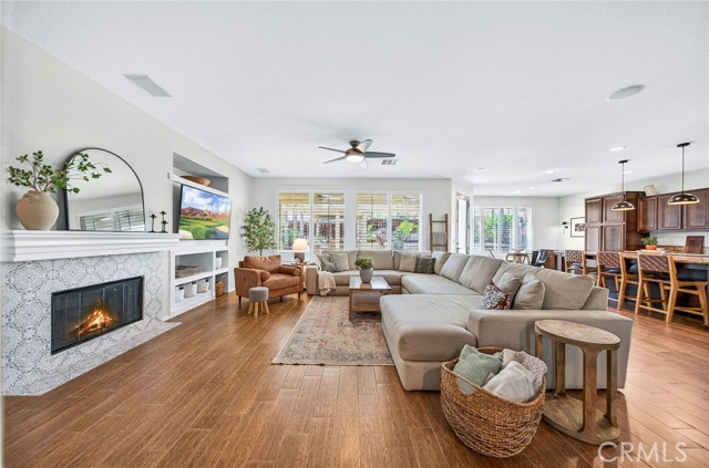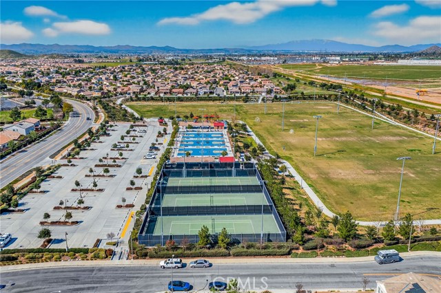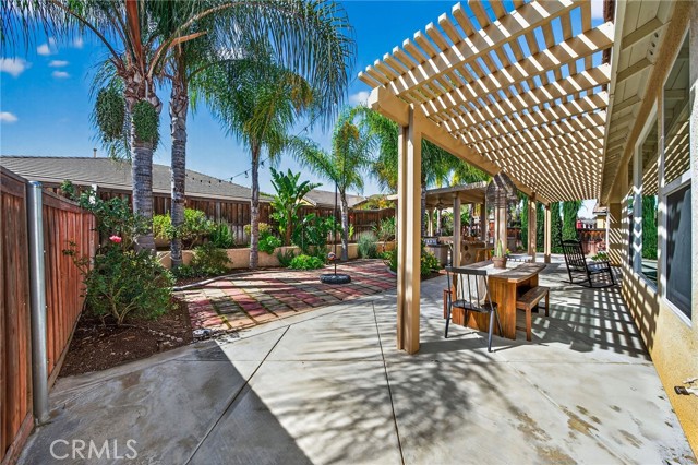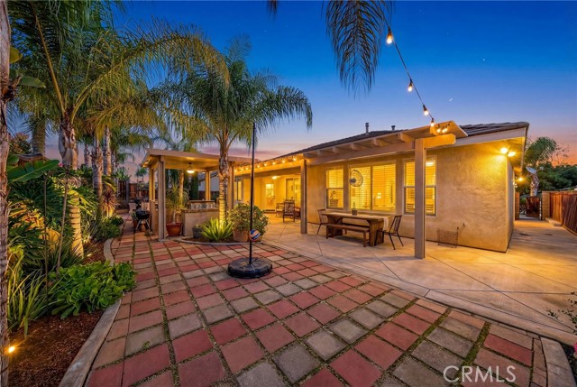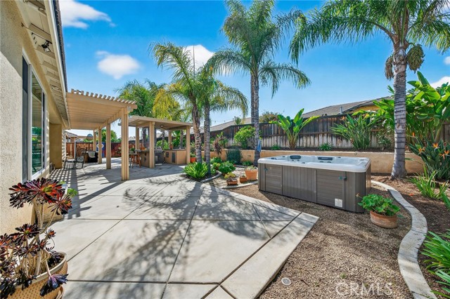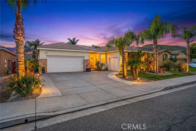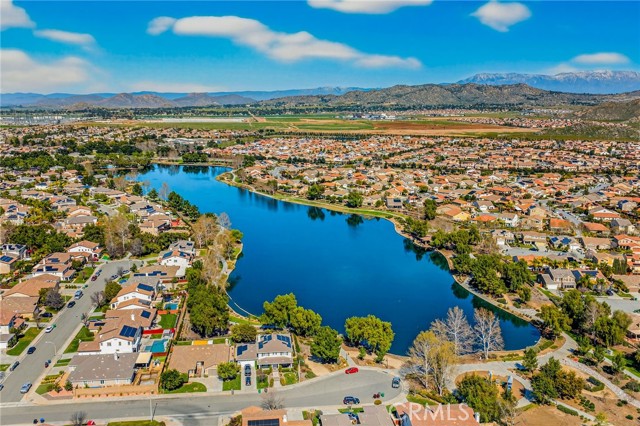 **OPEN HOUSE 2/28 from 11am-3pm** Welcome to HERITAGE LAKE! Located on a quiet street, this beautifully maintained single-story home offers the perfect blend of comfort, upgrades, and RESORT-STYLE outdoor living. Featuring 4 bedrooms and 2.5 bathrooms, the thoughtfully designed layout provides both functionality and privacy. The SPACIOUS PRIMARY SUITE includes dual his-and-hers closets, an extra-large double vanity, and an oversized soaking tub. Enjoy beautiful backyard views from the comfort of your own bed. Updated light fixtures and faucets have also been installed throughout the home. The kitchen is designed for both everyday living and entertaining, showcasing a large center island, new pendant lighting, new Samsung appliances, and a cozy breakfast nook. It flows seamlessly into the living areas and out to the backyard — where this home truly shines. The private backyard offers MOUNTAIN VIEWS, a custom OUTDOOR KITCHEN, Alumawood patio covers, and a spa. Mature landscaping includes 15+ queen palm trees, creating a stunning resort-like atmosphere. The backyard also offers five different FRUIT TREES: lemon, lime, grapefruit, plum, and pomegranate. The upgraded landscape design also includes a fully automated irrigation system. The home is equipped with an owned solar system and a LOW HOA. Living in Heritage Lake means access to INCREDIBLE COMMUNITY AMENITIES including two pools, a splash pad, multiple playgrounds within walking distance, fishing, and a massive sports park with tennis courts, basketball courts, and soccer fields. The elementary and middle schools are conveniently located within the neighborhood, and you’re just minutes from shopping, restaurants, and Menifee Lakes Golf Course. This is more than just a home — it’s a lifestyle.