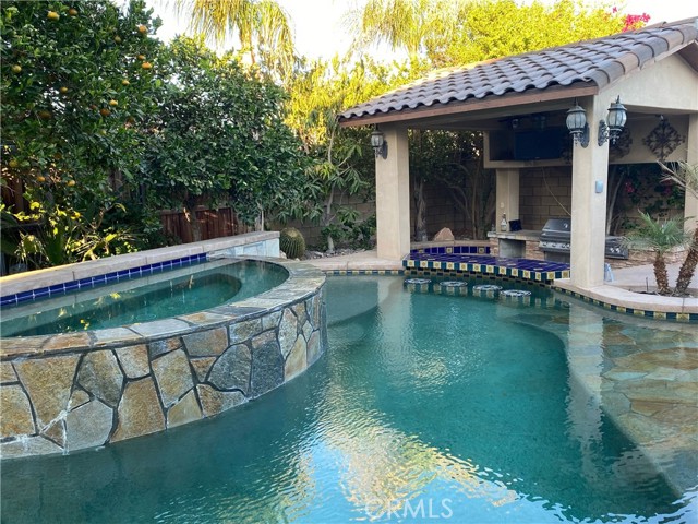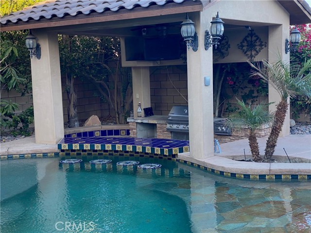 Incredible 6 bedroom 3 bath house in the sought after La Paloma Estates neighborhood has a breathtaking large pool, spa, waterfall, walk in beach entrance and a swim up pool bar with attached sunken BBQ/Cabana area. 3 hole putting green with beautiful landscaped yard, large oversized covered patio with an eating area and separate couch TV area, firepit, artificial grass area and outdoor lighting. 3 car garage has new epoxy floor and is used as a game room with portable air conditioner. This home has been a lucratic rental property with 4.9 star Airbnb rating the past 3 years with no HOA fees and very short term rental friendly city of Coachella walking distance to the festivals. This home is turn-key for the next lucky investor or homeowner. Kitchen is upgraded with stainless steel appliances, granite counter tops and large walk in pantry. All 6 bedrooms are fully furnished and ready to entertain up to 14 guests. Family room and dining room downstairs and a separate large Family/TV room upstairs. No expense spared with technology, you can control your pool/spa from your phone, as well as watch the 3 video cameras, control the door locks, thermostats, smoke detectors, powerful wifi throughout the house with 2 smart TV's in the backyard and 4 in the house. There are too many upgrades to list them all. You or your guests would never have to leave this 5 star resort!