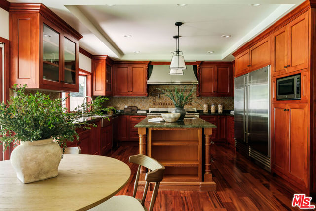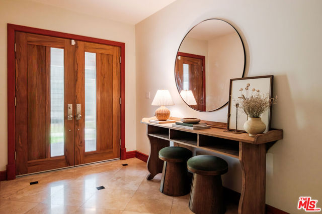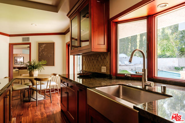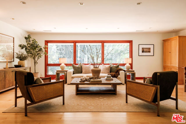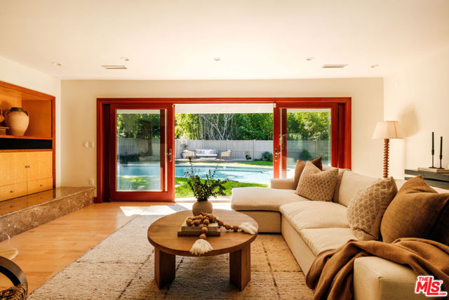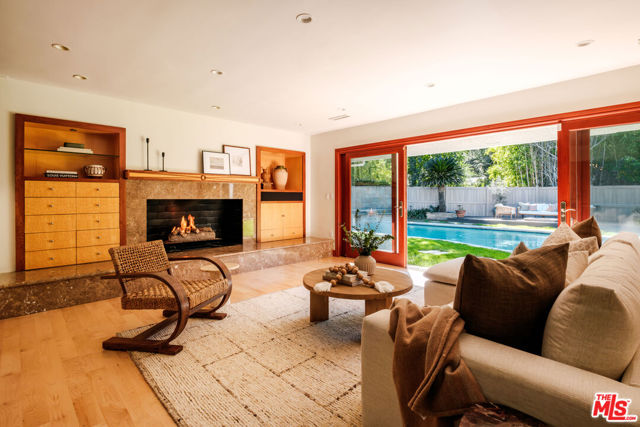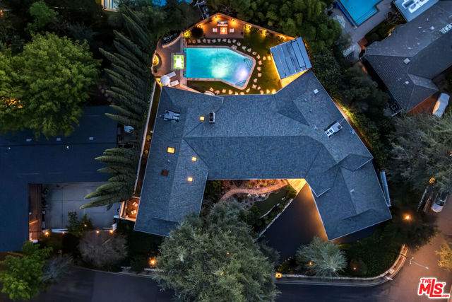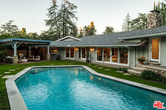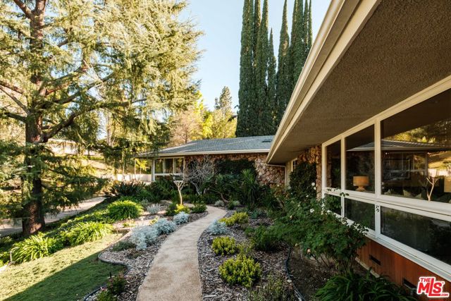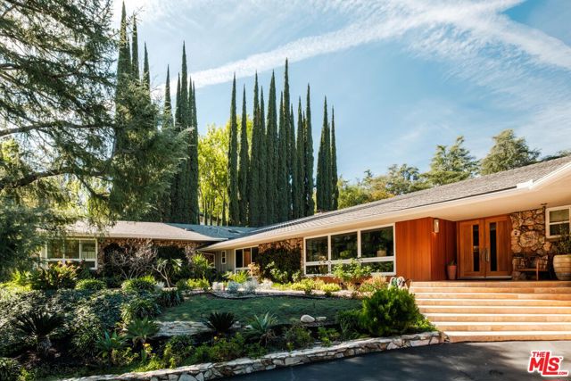 Discover the enchanting allure of 4975 Queen Florence Lance, a timeless Single-Story Estate in Woodland Hills' most desirable enclave Forrest Hills, a neighborhood steeped in Hollywood history and prestige. Set on a peaceful cul-de-sac along one of the neighborhood's most coveted and picturesque streets, this exceptional 4,975 sq ft residence offers luxurious single-level living on a grand scale. Surrounded by nature and some of the most beautiful tree-lined walking streets in Woodland Hills. Featuring 6 bedrooms and 6 bathrooms, the property radiates timeless beauty with exquisite details and natural earthen materials used throughout, creating an organic and elegant atmosphere. Privately nestled behind lush, mature landscaping and a canopy of trees, the property exudes both elegance and tranquility. Expansive custom windows flood the interiors with natural light while framing picturesque views of verdant greenery from nearly every room. The thoughtfully designed floor plan offers generous living spaces, all anchored by seamless transitions to the outdoor grounds. Inside, the home is equally well-appointed for modern living, featuring custom built-ins throughout and exquisite burl wood carpentry that adds warmth, richness, and architectural character to the interiors. Additional highlights include a spacious walk-in pantry, a large laundry room with an extra refrigerator and abundant storage, and a custom-built mud room designed to keep daily life organized while maintaining the home's clean, sophisticated aesthetic. A luxurious primary suite retreat designed for both comfort and sophistication, featuring custom windows that frame serene views of lush greenery and fill the space with beautiful natural light. A private patio extends the suite outdoors, offering a peaceful setting. The suite also includes a massive, custom-built walk-in closet creating a boutique-like dressing experience. The spa-inspired primary bathroom showcases a curated palette of timeless natural stone and refined finishes. A sculptural soaking tub, enveloped in luminous onyx, serves as a stunning focal point, complemented by a walk-in shower with matching onyx surrounds for a cohesive ambiance. Dual vanities are topped with elegant Taj Mahal quartzite countertops, while custom walnut cabinetry provides abundant storage. Warm Cream Marfil marble tile clads the walls, while honed limestone flooring grounds the space natural sophistication. Thoughtfully designed with elevated craftsmanship and enduring materials, this primary suite offers a tranquil experience for everyday living. The kitchen is equally impressive, featuring custom solid wood cabinetry paired with premium Wolf appliances, including a professional-grade range, and a Sub-Zero refrigerator for superior performance. This kitchen provides a refined yet highly practical culinary space. Step outside to a modern resort-style pool featuring soothing waterfall features and an elevated spa, surrounded by incredible landscaping, mature trees, and vibrant plantings that create a private oasis. A cozy gas fire pit and custom outdoor gazebo elevate the space into a private retreat designed for both relaxation and entertaining. A massive 3-car garage provides abundant space, complemented by a dedicated storage room offering exceptional functionality and organization rarely found in single-story homes of this caliber. With its rare combination of size, single-story convenience, and six full bedrooms with en-suite baths, this residence offers flexibility for multigenerational living, guests, or work-from-home needs. Ideally located near top-rated schools, upscale shopping and dining, and the scenic trails of the Santa Monica Mountains, all just minutes from Calabasas Commons and a short drive to Malibu's iconic beaches, this is a rare opportunity to own a premier Forrest Hills estate on prestigious Queen Florence Lane.