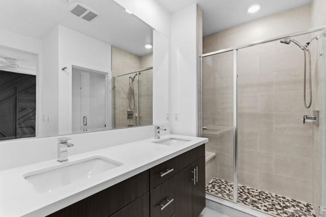 3-bed 3-bath | 1,515 sqft Home at Civita Promontory Community Welcome to this stunning home at the peak of Civita’s Promontory community, designed to live like a single-family residence with the convenience of luxury townhome living. Ideally positioned along the hillside, it offers exceptional privacy, abundant natural light, and Mission Valley views. Enter through the attached two-car garage to a welcoming foyer with a full bedroom and bath—ideal for guests, multigenerational living, or a private office. The main level features bright open-concept living with luxury vinyl flooring, premium finishes, and a wall of windows that opens to a private balcony. The upgraded kitchen showcases quartz countertops, stainless steel appliances, modern cabinetry, and designer lighting—perfect for everyday living and entertaining. Upstairs, two spacious ensuite bedrooms include a generous primary suite with walk-in closet and spa-style bath. A rare highlight: an exclusive private yard—one of only 20 in the community—offering no rear neighbors and enhanced privacy. Residents enjoy resort-style amenities including pools, fitness facilities, parks, and trails, all centrally located near Mission Valley shopping, dining, beaches, Mission Bay, and major freeways.