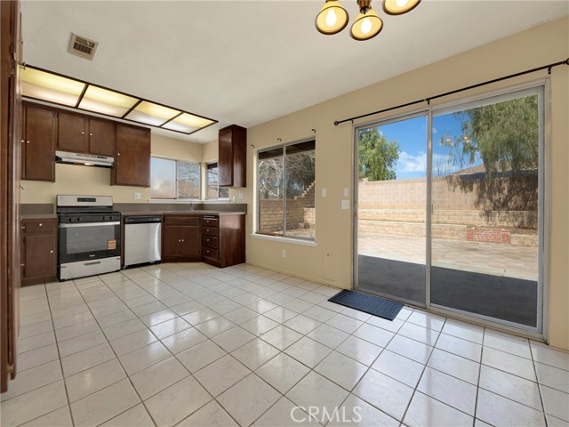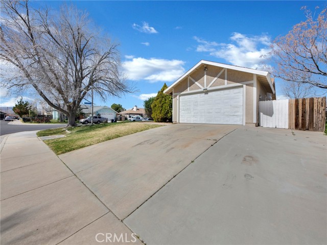 Welcome to this beautifully renovated 3-bedroom, 2-bath home situated on a spacious 7,097 sq ft corner lot. The property features a large front yard with a beautiful tree that provides both shade and great curb appeal. Step inside to a generously sized living room with high ceilings and a cozy fireplace. The living space flows into the dining area, which includes a sliding door that opens to the backyard, perfect for indoor-outdoor living. The kitchen is conveniently located off the dining area and offers ample cabinetry, granite countertops, and a new stove. All three bedrooms are well-sized and include closets with sliding doors. The primary bedroom is located toward the back of the home, offering added privacy. Both bathrooms feature newer vanities. One includes a shower-over-tub combination, while the other offers a walk-in shower. The laundry room is located inside the home and provides direct access to the garage. Tile flooring runs throughout the home for durability and easy maintenance. The large backyard is ideal for entertaining and is designed to be low maintenance with concrete tiles and a concrete slab. The interior and exterior trim were freshly painted in February 2026, a new garbage disposal and two new toilets were also installed. FHA and VA buyers are welcome. This property is also a great opportunity for investors seeking rental income. No HOA or Mello Roos fees. Conveniently located near the 14 Freeway, Lockheed Martin Aeronautics, the Antelope Valley Mall, and nearby restaurants and shopping. Palmdale High School is just a few blocks away. Agents: Please review agent remarks prior to scheduling a showing.