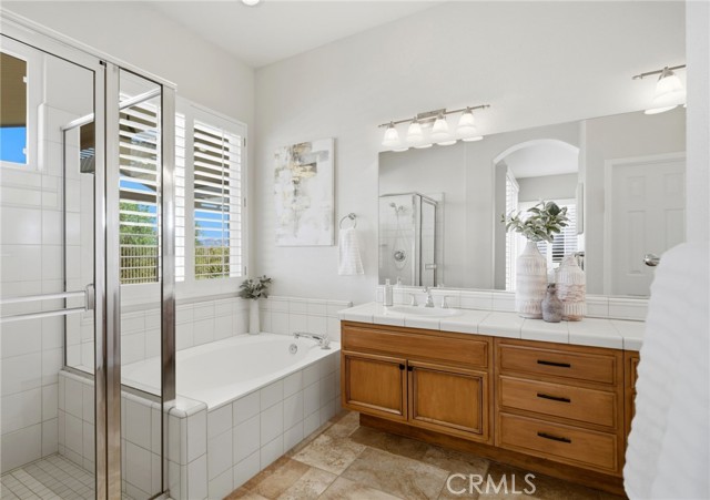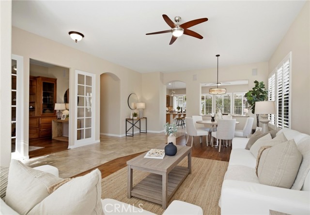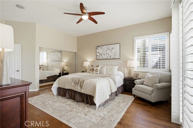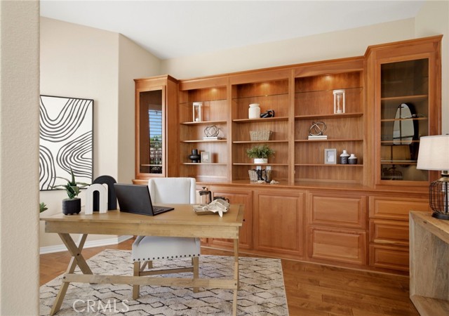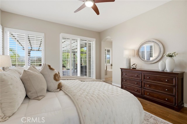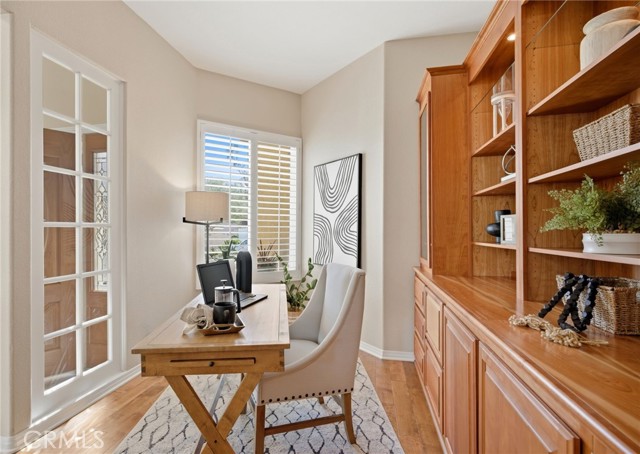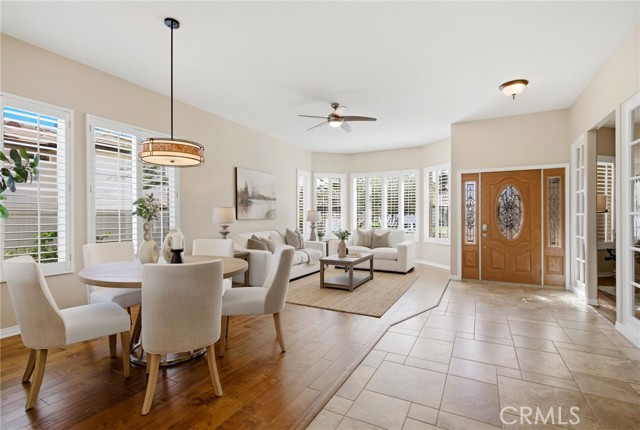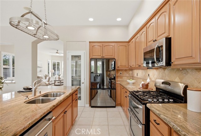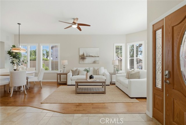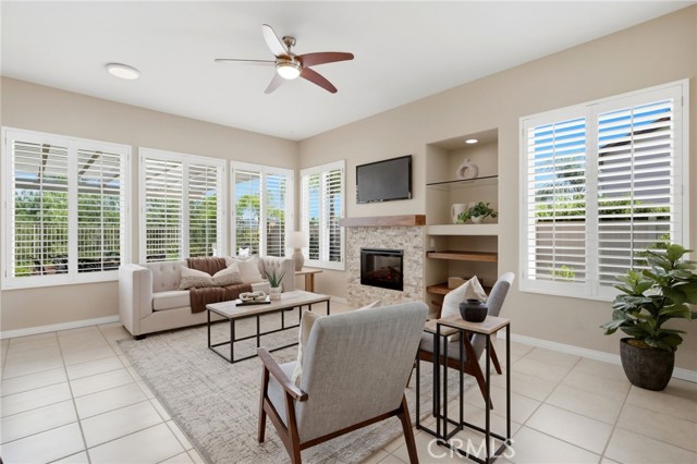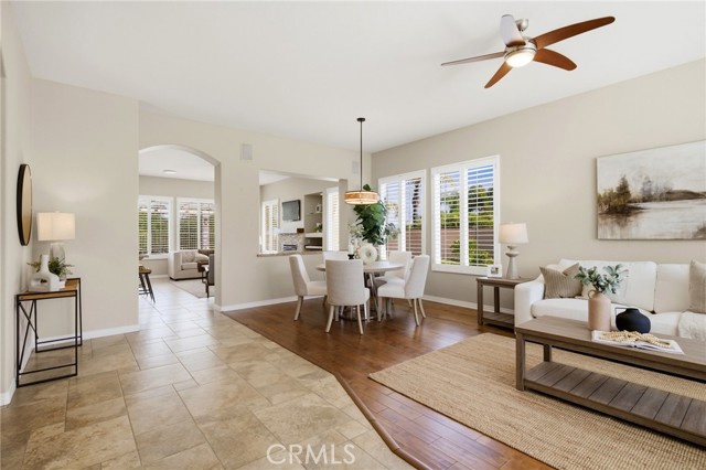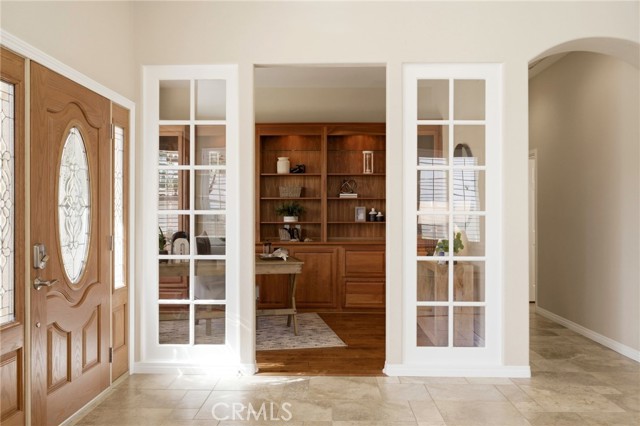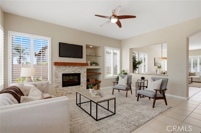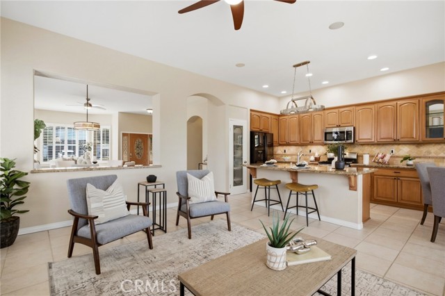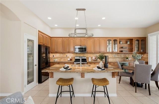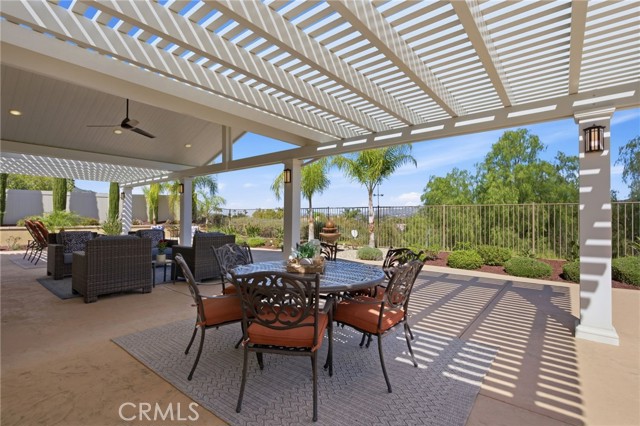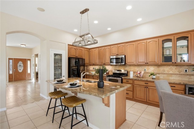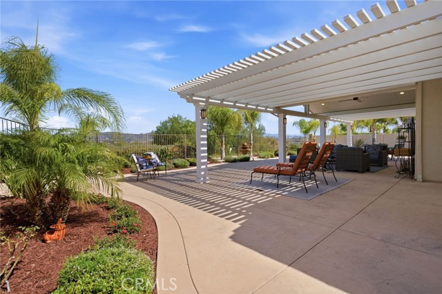 Rare single-story home in the highly desirable Bear Valley community of Copper Canyon! Situated on a sprawling 10,000 sq ft lot with sweeping views and improved RV parking, this beautifully upgraded 3-bedroom plus office home offers space, style, and an unbeatable location. Inside you’ll find tall ceilings, wood and tile flooring, plantation shutters, and an open layout ideal for everyday living and entertaining. The upgraded kitchen features custom refinished cabinetry, granite countertops, full tile backsplash, stainless steel appliances, large pantry, abundant storage, and a spacious center island that opens to the family room. The family room showcases an upgraded electric fireplace with custom stone surround and reclaimed wood mantel. One secondary bedroom includes a custom California Closets Murphy bed. The primary suite offers dual closets (including a large walk-in), sliding glass door to the backyard, and a private bath with dual sinks. The hall bath was recently remodeled with quartz counters and a custom walk-in shower. Enjoy exceptional curb appeal with a custom walkway, professional landscaping, vinyl side fencing, and wrought iron fencing across the back to capture the views. The backyard is designed for SoCal living with a full-length Alumawood patio cover with center peak ceiling, lighting, ceiling fans, mature landscaping, and yard lighting. Low tax rate (approx. 1.3%), NO HOA, top-rated schools, easy freeway access, trails leading to the Santa Rosa Plateau, parks, and just minutes to Downtown Murrieta. A rare single-story view home you don’t want to miss!