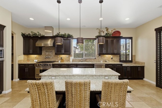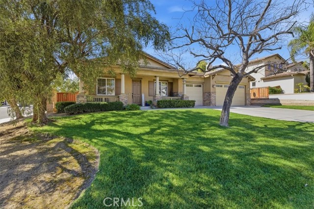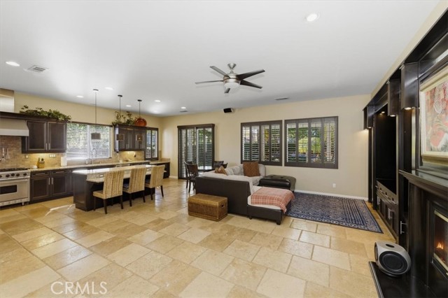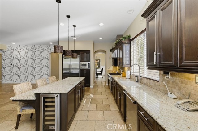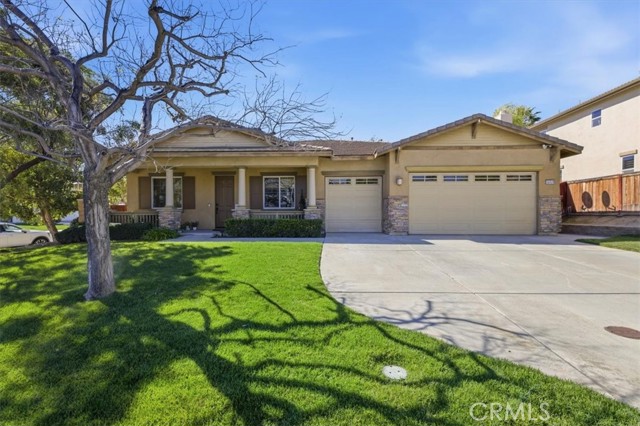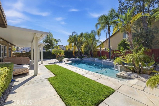 Hard to find upgraded single story home with entertainer's dream pool backyard. This upgraded and meticulously maintained home offers a spacious and well designed floor plan with great amenities and a back yard paradise. The upgraded kitchen features Viking stainless appliances and includes a large center island, walk-in pantry and loads of cabinets and counter space. The kitchen on one side opens to a large family room with an inviting fireplace. On the other side of the kitchen the butler's pantry leads into the formal dining room. Off of the dining room is a cozy living room/den/sitting room. There is direct access to both a double and single car garages. The primary bedroom has direct access to the pool and spa area. The primary bath features an over-sized walk-in shower, dual walk-in close. Home includes water softener and leased solar. Make sure to check out the virtual tour and schedule an appointment to see it in person.