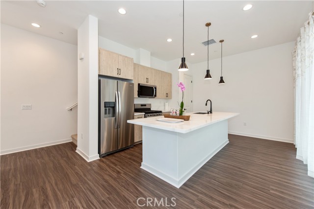 Welcome to this contemporary beautiful townhome is situated in a beautiful neighborhood, Great Park Polaris Community Built by Pulte Home, exceptional Irvine school District, and convenient access to various amenities and entertainment options. It boasts a generous living space of 1254 square feet, built in 2024, featuring 2 bedrooms with 2.5 bathrooms, 10 feet ceiling height, Customize Window Covering included, Private balcony, Corner location, a 2-car attached garage with direct access, and upgraded carpet flooring in the bedrooms and luxury Vinyl wood flooring in Living room, Kitchen and the bathrooms. As you enter the home, garage entry on the first floor, The second level offers wood flooring throughout the bright and spacious living room, a large sliding door that leads to a balcony, a dining area, and a gourmet kitchen with modern appliances and easy-to-use cabinet drawers, grand brand-new built-in refrigerator, The master bedroom and second Guest bedrooms on the Third Level, with natural light and air in, the laundry room are conveniently located on the third level. Great Park Community offers Pools, Parks, entertainment area, kids-playgrounds, convenience Guests parking location, short drive distance to shopping and dining area, walking distance to Solis Park K-8 and Portola High School, connivence access to Hwy 5, 133, 241 and 405, making it an absolute must-see property.