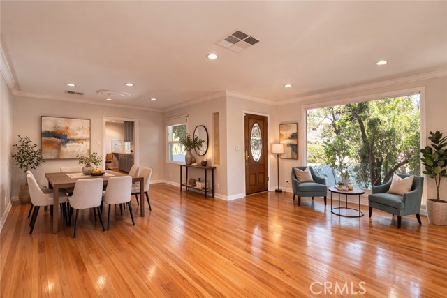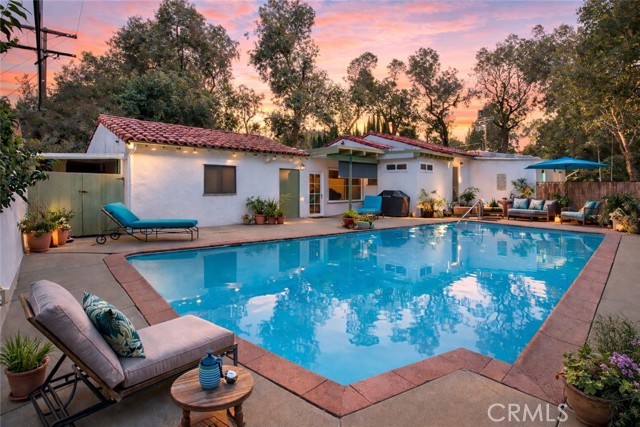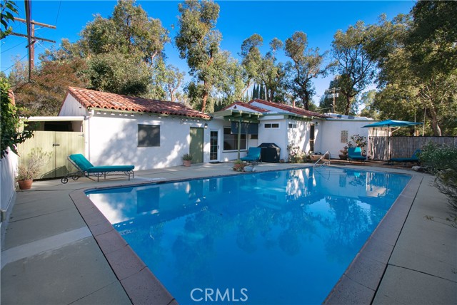 Woodland Hills Spanish-Style Retreat, South of Ventura Boulevard! Welcome to this charming Santa Barbara-inspired residence ideally situated on a desirable corner lot south of Ventura Boulevard. Built in 1949 and thoughtfully maintained, this single-story home offers approximately 2,076 square feet of living space, comfortably situated on a 8006 square foot lot, featuring three bedrooms and two bathrooms, blending timeless architectural character with everyday comfort. Arched wrought-iron gates welcome you into the private outdoors, evoking classic Spanish hacienda design and setting a warm, romantic tone. Classic white stucco, a red tile roof, and graceful arched details which create inviting curb appeal, while mature trees provide shade, privacy, and a sense of established charm. Inside, the home showcases warm hardwood flooring, abundant natural light, and a functional layout designed for both relaxed living and entertaining. The kitchen offers generous cabinetry, upgraded stainless appliances, and ample workspace, flowing seamlessly into the home’s living areas. Each bedroom is well-proportioned. The backyard captures the essence of California indoor-outdoor living with a sparkling pool, patio areas, and a private courtyard atmosphere perfect for entertaining, lounging, or enjoying warm Woodland Hills evenings. Located moments from dining destinations, café’s, shopping in The Village & Westfield Topanga Mall, Calabasas Commons, 101 Freeway, Parks, Upscale neighborhood nightlife and commuter routes, minutes from Historical Topanga Canyon and our beautiful coastline & beaches. This south-of-the-Boulevard property presents a rare opportunity to own a character-rich home in one of Woodland Hills’ most sought-after neighborhoods.