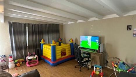 Tucked on a spacious 0.86 acre corner lot, this 3 bedroom 1 bathroom desert home offers room to spread out and the kind of outdoor living you come for. With 984 sq ft of interior space. The layout offers plenty of potential to make it your ow. Just off the patio you will find a separate laundry and storage room practical bonus for keeping gear, tools, and supplies organized. Outside enjoy the circular driveway for easy access and parking, plus outdoor patio and firepit area perfect for stargazing nights and weekend gatherings, the location is a standout, with BLM land nearby for exploring, riding, hiking, and wide open desert views. The home does need some work, making is a great opportunity for buyers looking for a value play, a project, or a place to customize over time. Bring your vision and turn this desert property into your own retreat.