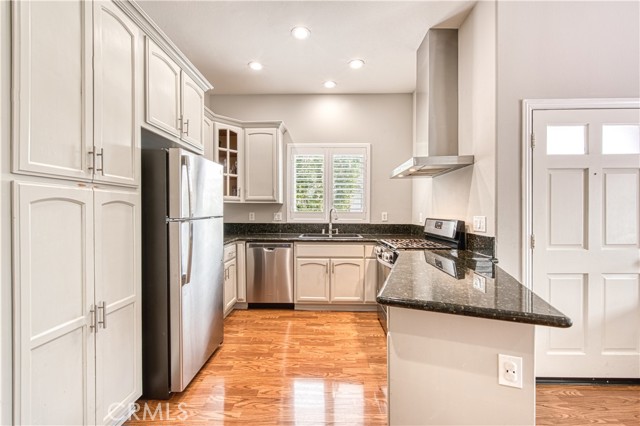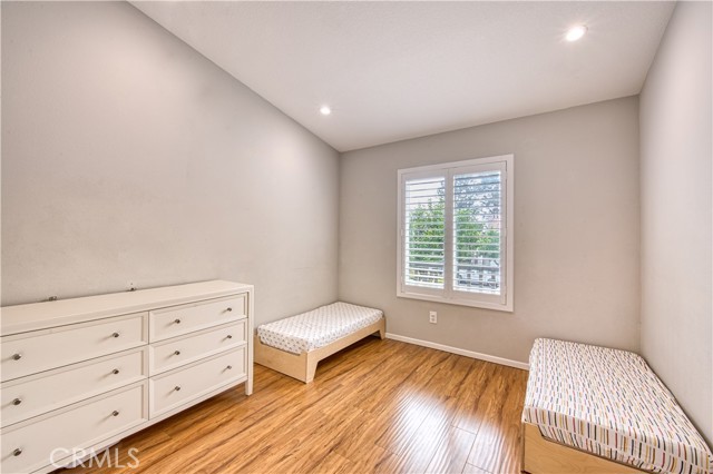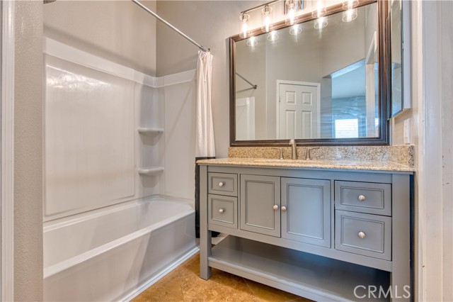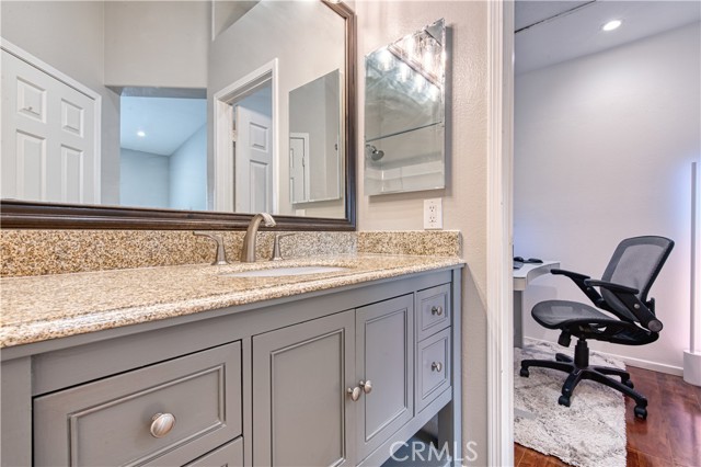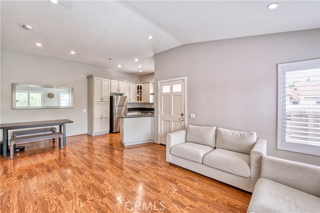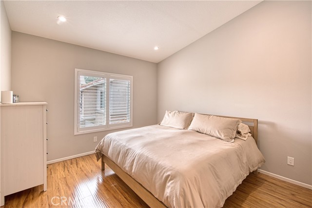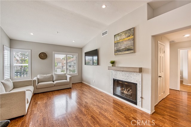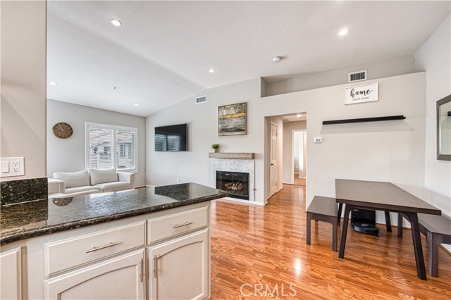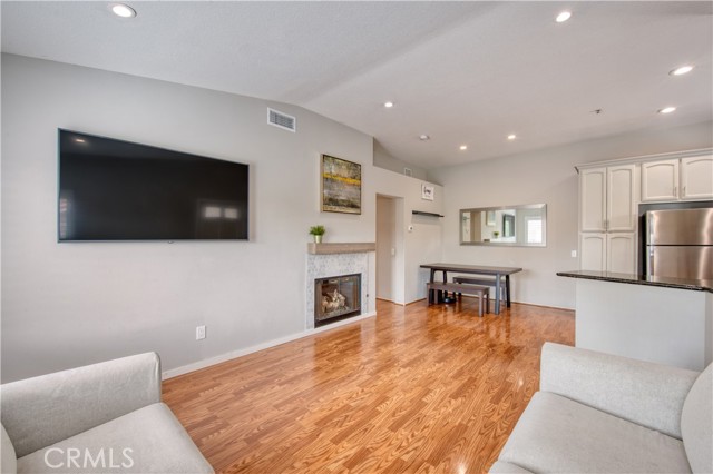 Welcome to this beautifully upgraded upper-level condominium offering 2 bedrooms, 2 bathrooms and a light filled open layout for modern living. With thoughtful improvements, this home blends comfort, style and functionality in every detail. The inviting living room features wood laminate flooring, recessed lighting and a stunning fireplace with a marble tile surround and wood mantle. A concealed TV outlet and mount create a clean streamlined look, while vinyl plantation shutters and Milgard double-pane windows enhance both energy, efficiency and timeless appeal. The kitchen offers granite countertops, stainless steel appliances and range hood, and newer dishwasher, stove, range, and refrigerator. Both bathrooms upgraded with remodeled showers and beautiful tile. Primary suite offers a perfect work-from-home space. Additional features include a single car garage with newer epoxy floors and a 14-50 NEMA outlet for EV charging, as well as washer and dryer hook ups. Residents of California Court enjoy an array of amenities including a community pool, spa, and BBQ area. Perfectly situated near shopping, dining and major freeways, this turnkey home offers low maintenance living with high impact upgrades-an ideal opportunity for buyers seeking style, convenience and modern amenities in a desirable upper unit setting!