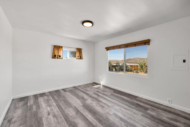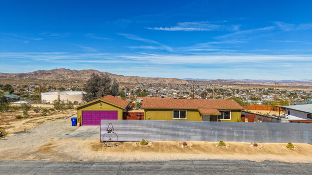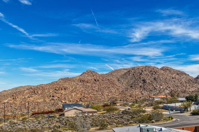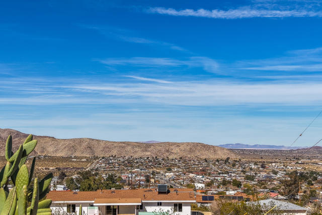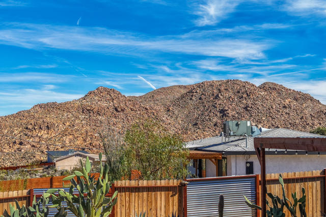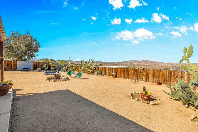 Panoramic show stopping views from every window in this absolutely adorable home! Location, Location, Location this is the one! South side of Joshua Tree sits on an elevated large lot filled with charming tressures from the past, unique & impeccable landscaping both front & backyard. Corrugated steel front fencing! Covered back patio, completely fence. 360 Views from your backyard. Stunning!! Completely re-done. Beautiful wood flooring thru-out, freshly painted, custom windows & coverings, Kitchen has all new appliances, natural gas stove.. Master bath has been re-done cobble stone shower with sunk in tub, custom closet door. Guest bath also features cobble stone shower & new vanity. New roof just 2 yrs old. 3 splitter ac/heater units just installed. New water heater, Double car garage electric with remote. Looking out your front door, you see the stunning Coyote Hole Mountain. Fabulous hiking steps from this home. Located just 2 miles from the entrance to Joshua Tree National Park. Full RV hook up. Extra-large lot maintained. So much more to see. This one is special and a must see!Easy to show on short notice. Please give me a call!