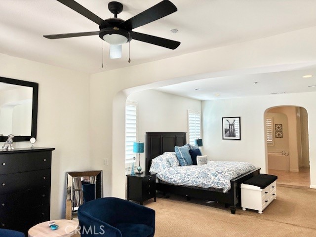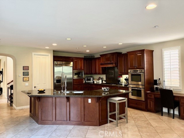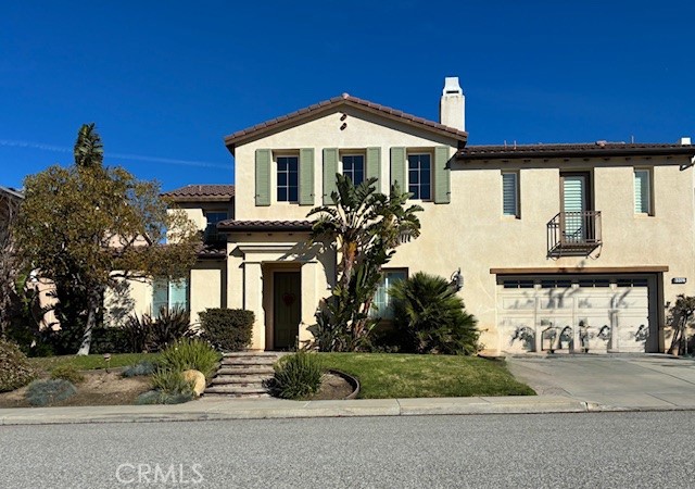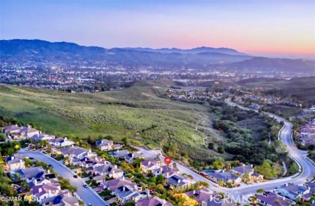 Nestled on one of the most desirable cul-de-sacs in Castlewood at Big Sky, this exceptional Shea Homes residence offers breathtaking mountain views and unobstructed sunsets. This beautiful home features five bedrooms and four and a half bathrooms, including a spacious main-floor bedroom with a full en suite bath. The interior flows with elegance, beginning with a formal living room characterized by vaulted ceilings, a switch-activated fireplace, and custom shelving. The nearby formal dining room includes dimmable lighting and custom cabinetry with glass display doors. The gourmet kitchen is equipped with Bosch stainless steel appliances, double ovens, a gas stovetop, a Thermador refrigerator, and granite countertops. A large walk-in pantry provides ample storage. This space opens seamlessly into the family room, which features a fireplace with a large mantel and a custom built-in entertainment center. Additionally, a versatile bonus room can serve as a game room, gym, or movie theater, conveniently located near a hallway powder room. The upper level begins with a cozy sitting area by a nearly floor-to-ceiling window. At the top of the staircase, a second sitting area with bookshelves creates a library-like atmosphere. One wing holds a spacious laundry room and two bedrooms connected by a Jack and Jill bathroom. The opposite wing features another bedroom with a full bathroom and a French door leading to a private balcony. The primary suite is a restful retreat, featuring a bonus living area with French doors opening to an enclosed private balcony. The primary bathroom includes a large jacuzzi tub, a walk-in shower, and separate vanities, leading into an oversized, custom walk-in closet. Outside, French doors lead to a patio featuring an outdoor fireplace, perfect for entertaining. The landscaped backyard offers ample space for gatherings, complemented lighting and mature trees that provide both shade and privacy. The three-car garage is well-equipped with storage shelving, a water filtration system, a water softener, and a newly installed tankless water heater. Enjoy close proximity to scenic hiking trails and the Simi dog park in a peaceful hillside neighborhood that beautifully blends natural beauty with a strong sense of community.