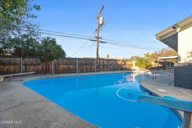 Step inside to a bright and inviting kitchen and dining area, featuring classic tile countertops, abundant cabinet and pantry storage, a large island, a dual sink, and a built-in wine cabinet. Expansive windows fill the space with natural light and open effortlessly to the living area. The family room features a beautiful real-stone fireplace, creating a warm, inviting centerpiece for cozy evenings or lively gatherings, complemented by built-in display cabinets for added charm. The formal living area offers ample space for entertaining or everyday living. The primary suite is very spacious and filled with natural light, featuring the primary bathroom with granite countertops, a vanity, and a grey-tiled shower. Two additional bedrooms are bright and airy, each with ample closet space, and a second bathroom with granite countertops and a tiled shower. A sparkling pool and private backyard make this home perfect for enjoying the outdoors. Conveniently situated near local schools and stores, this home provides exceptional comfort, generous space, and a welcoming neighborhood feel!