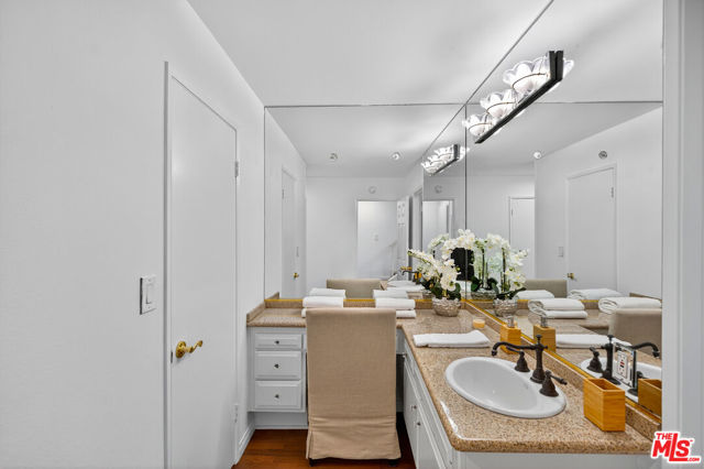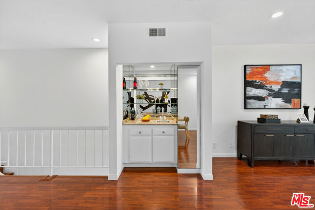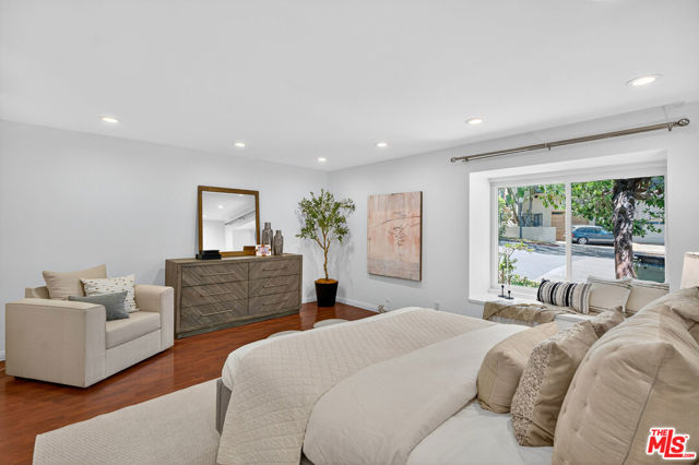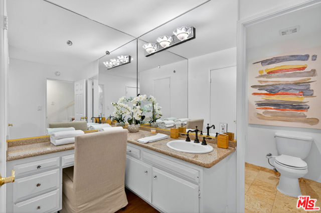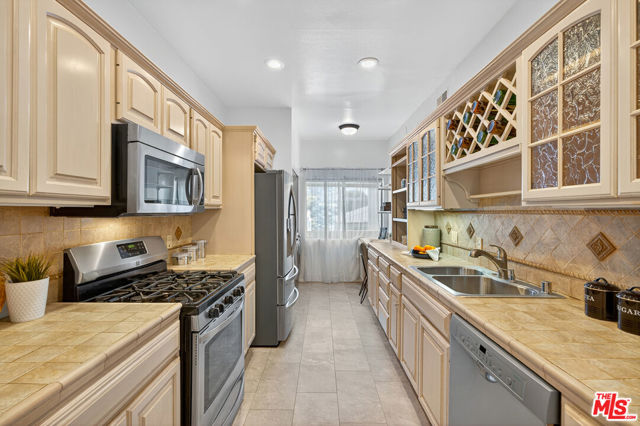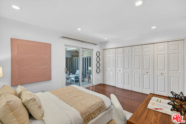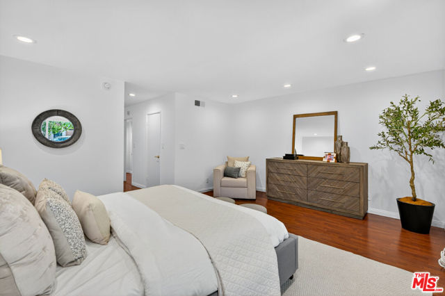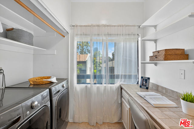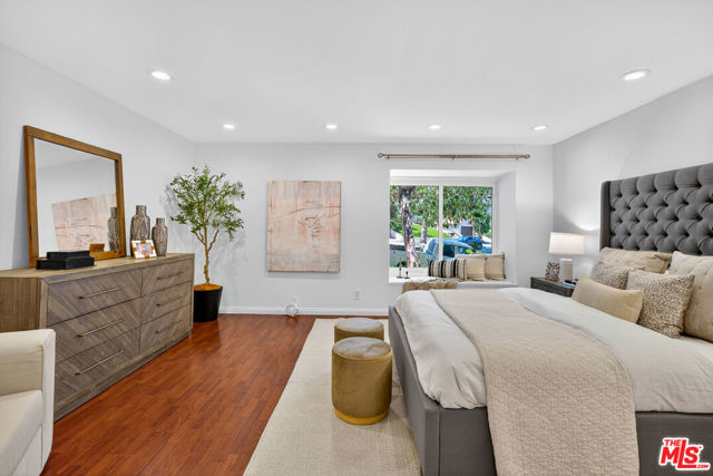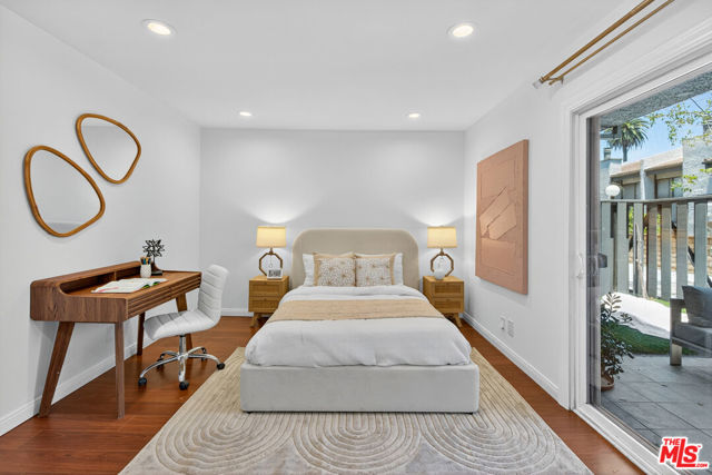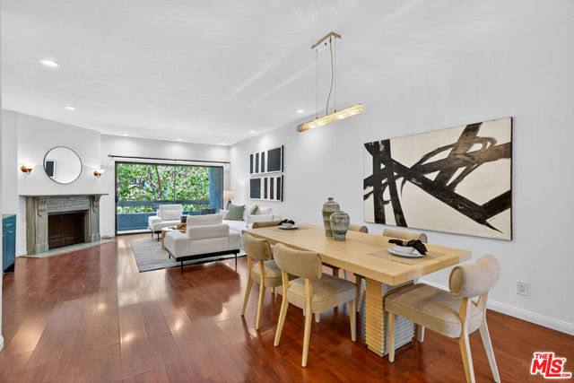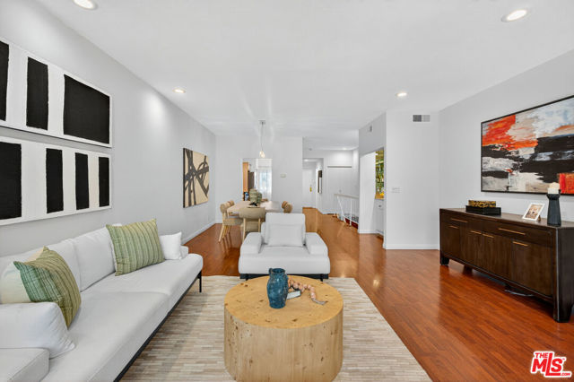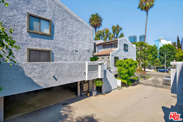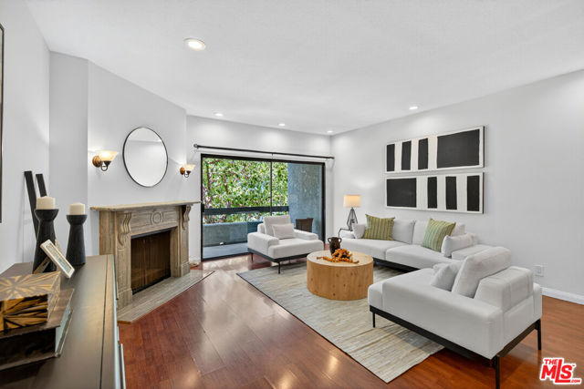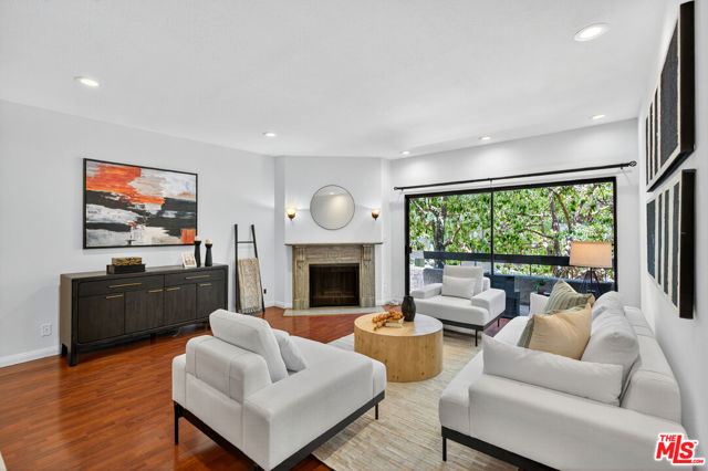 Welcome to this beautifully 2-bedroom, 2.5-bath reverse-floorplan townhome, tucked away on a peaceful, tree-lined street in the heart of Westwood.The upper level features a sun-drenched, expansive living room with soaring ceilings and a classic marble fireplaceperfect for cozy evenings. Adjacent to the formal dining area is a built-in wet bar, and sliding glass doors open to a generous balcony, ideal for outdoor dining or simply relaxing in the quiet surroundings.The chef's kitchen is a standout with custom tilework, stainless steel appliances, ample cabinetry, and a built-in desk alongside a convenient in-unit laundry area.Downstairs, the spacious primary suite offers two walk-in closets, a charming window seat, and a luxurious en-suite bath with granite countertops and travertine flooring. The second bedroom enjoys direct access to a large private patioperfect for morning coffee or evening relaxation.Additional highlights include two side-by-side parking spaces, plenty of guest parking, and access to a well-maintained community spa.Located just minutes from Century City, Beverly Hills, Westfield Mall, and UCLA, and within short distance to top-rated Westwood Charter Elementary and local restaurants. Don't miss this rare opportunity to own in one of West LA's most sought-after neighborhoods!