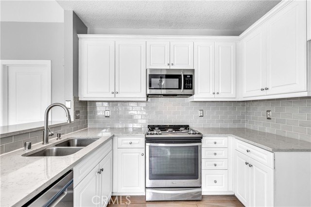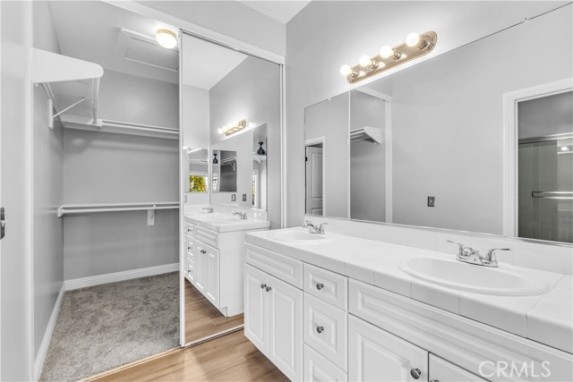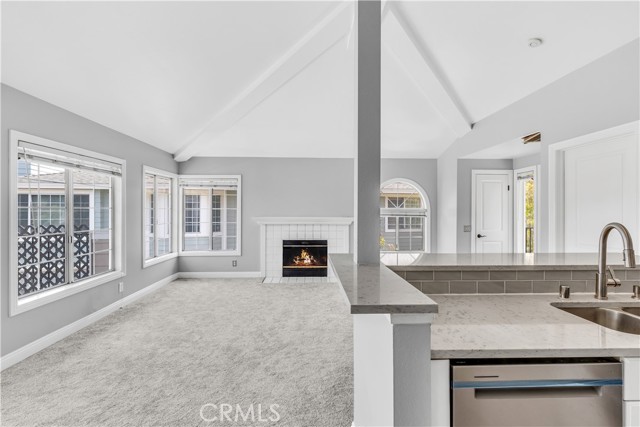 Welcome to this serene and inviting 2-bedroom, 2-bath condo located in the heart of Aliso Viejo, offering a tranquil retreat with an abundance of natural light and privacy. This charming home features an open floor plan with a spacious kitchen, complete with quartz countertops and stainless steel appliances. The kitchen seamlessly flows into the living room, where you’ll find plenty of a vaulted ceiling, windows and a cozy fireplace for those relaxing evenings. Enjoy additional storage in the quaint pantry area, accented by a stylish barn door near the eating area. The primary bedroom features a built-in bookcase and the perfect alcove to setup a vanity area/office area. Both spacious bedrooms are designed with comfort in mind, each offering, ceiling fans, walk-in closets, individual bathrooms with dual sinks. The large balcony is perfect for soaking up the sun or enjoying a glass of wine at the end of the day. The laundry area is conveniently located in a storage closet on the balcony. This home includes a detached garage and an assigned parking space. The community provides access to a pools, spa, and gym, all within a secure gated environment. With excellent schools nearby and just a short walk to restaurants, theaters, shops, and parks, this condo presents the perfect blend of convenience and serenity. Experience the best of Aliso Viejo living in this peaceful condo oasis!