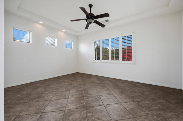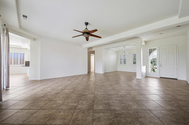 La Quinta Del Oro, North La Quinta, across from Indian Wells Tennis GardenLocated in a true desert paradise community, this light filled 3BD, 3BA home offers a spacious, versatile bright floor plan with two private suites. The primary suite features dual vanities, a Jacuzzi soaking tub, and separate shower. Enjoy a separate living room with fireplace, additional family room, and flexible space for formal dining, den, or office. The living room floor plan opens up to the kitchen with large counter tops, stainless steel appliances, window shutters, cover backyard patio, laundry room, and attached garage complete the home.Prime location near world class tennis, golf, dining, and shopping in sought after North La Quinta.