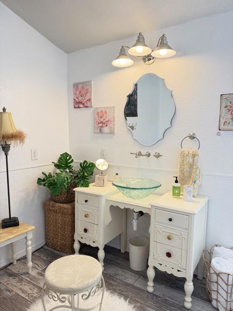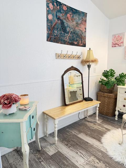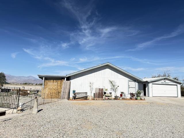 Welcome to this beautifully upgraded manufactured home on a permanent foundation (433A), offering 2 bedrooms plus a bonus room/optional third bedroom, 3 bathrooms, and an impressive 1,950 sq. ft. of living space on a sprawling 32,510 sq. ft. lot. Pride of ownership is evident throughout, making this one of the most desirable homes in the growing Salton City area of Thermal.Step inside to a thoughtfully designed floor plan that creates a natural flow between the living, dining, and kitchen areas. This custom home features numerous upgrades, including a remodeled kitchen, updated master and guest bathrooms, fresh interior paint, ceiling fans in the bedrooms, and a well-maintained HVAC system with recently cleaned and sanitized ducts. Additional improvements include new plumbing and stylish like-wood flooring in the bedrooms, bathrooms, and kitchen.The kitchen is a warm and inviting space with a cozy breakfast nook and a convenient pantry. A bonus room off the main living area offers wonderful flexibility--perfect for a home office, hobby room, guest space, or quiet retreat. Large windows fill the room with natural light and frame beautiful lake and mountain views.Both bathrooms feature walk-in tubs and showers, providing comfort, ease of use, and modern functionality. Every corner of this home reflects care and elegance, including a charming TV room and a welcoming entry highlighted by a cheerful blue front door.Outdoor living is exceptional. Situated on a cul-de-sac, this is the largest home on the street and offers a covered side patio, a well-designed side yard with an outdoor shower--ideal for warm summer days--and plenty of space for gatherings and entertainment. The back patio provides another inviting area for relaxing or hosting guests.Additional features include a detached two-car garage with abundant storage and its own half bathroom--perfect for tools, projects, or extra convenience.Possibilities abound. Enjoy it as a primary residence, a peaceful desert getaway, or explore rental opportunities such as RV/short-term leasing. No HOA--buyers win!This home is a rare gem--beautifully cared for, thoughtfully upgraded, and truly move-in ready. Don't miss your chance to make it yours.