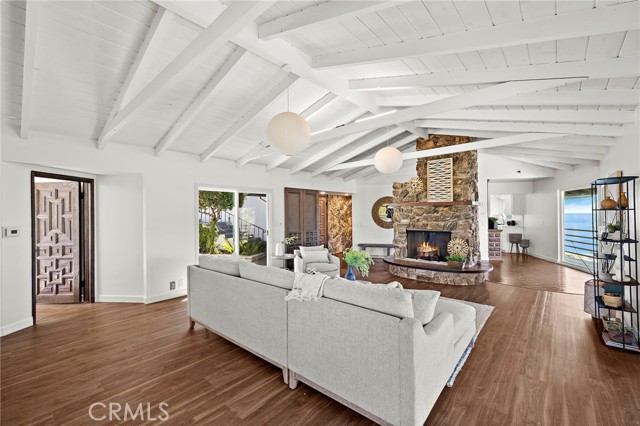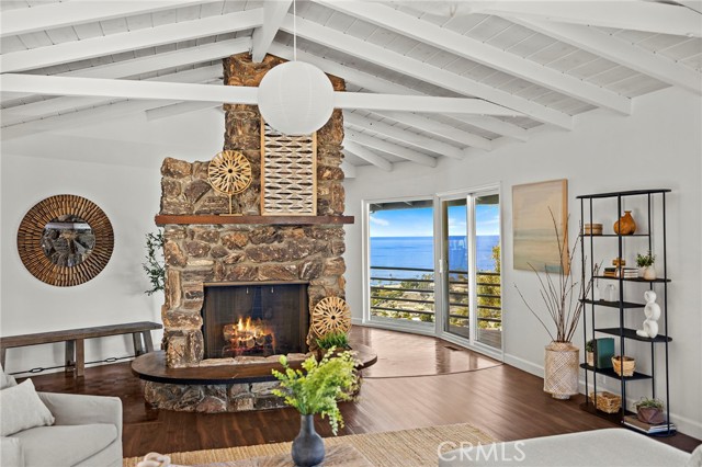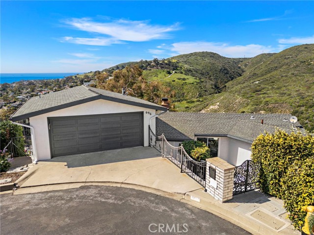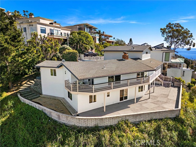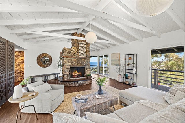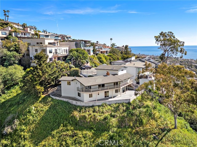 Perched at the end of a quiet cul-de-sac in the coveted enclave of Mystic Hills, this iconic 1960 mid-century residence showcases breathtaking 270-degree panoramic views of White Water, Coastline, Pacific Ocean, Catalina Island, Laguna Canyon, and the Surrounding Mountains Ranges, all from its premier setting above Downtown Laguna Beach. Spanning approximately 2,447 square feet on an expansive 9,520 square-foot terraced lot, this 3-bedroom, 2.5-bathroom home captures stunning views from virtually every room. The main-level wraparound balcony allows you to soak in the breathtaking scenery in complete privacy, while the main-level primary suite offers exceptional convenience. The kitchen is perfectly positioned to enjoy white water ocean vistas and Catalina Island Sunsets that elevate everyday living. The lower level features two additional bedrooms connected by a Jack-and-Jill bathroom, with sliding doors that open to the generous backyard. Ideal for relaxing in nature, soaking in endless views, or hosting holiday gatherings and dinner parties, this outdoor space enhances the home’s seamless indoor-outdoor flow. Each bedroom showcases unforgettable scenery, creating a true coastal retreat experience. Rich with authentic mid-century character, the home features its original fireplace, beautifully exposed beams, and architectural details that celebrate the era’s timeless design. This is a rare opportunity for a mid-century enthusiast to thoughtfully restore and customize a classic — or for a developer to capitalize on the generous lot size, with potential to build a new construction residence of 4,000+ square feet. Conceptual renderings by local Laguna Beach architect Leigh Snow are available in the listing supplements, offering an inspiring vision of the property’s full potential. Enjoy endless coastal/canyon views and close proximity to Laguna Beach High School, downtown Laguna Beach, Laguna Canyon, the beloved Sawdust Art Festival, Festival of Arts, and Main Beach — along with world-class dining, shopping, and coastal living at its finest. Opportunities like this are exceptionally rare. Don’t miss your chance to own or reimagine a true Laguna Beach legacy property.