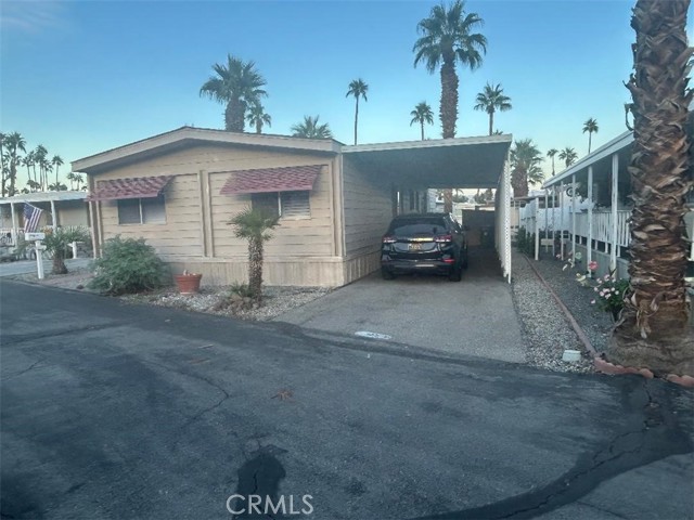 Welcome to 285 Butterfield located in the desirable 55+ Royal Palms Manufactured Home Community, 1536 Cathedral City. This spacious 1536 sq/ ft, 2-bedroom, 2-bath home. Beautiful shutters thru out the house. A covered carport provides parking for three vehicles, Residents of Royal Palms enjoy a wide range of resort-style amenities including a heated pool and spa for year-round relaxation, a clubhouse that serves as the social hub with billiards, cards, and community events, and two large putting greens perfect for practicing your short game. Additional features include shuffleboard courts, a well-equipped fitness center, dog parks, and a full calendar of planned activities designed to bring neighbors together. This home move-in ready, Large 2 Beds·2 Baths·1,536 Sq Ft Extra Large 2nd bedroom that has its own bathroom. Large Closets and extra storage. Washer/Dryer in laundry room Refrigerator ,Dishwasher, Included All furnishings Included. Storage Shed Central AC Gas heating Off-street parking Big Carport 3 parking places, 2 are under the carport Newer Central AC and Evaporative cooler to save on the electric bill.