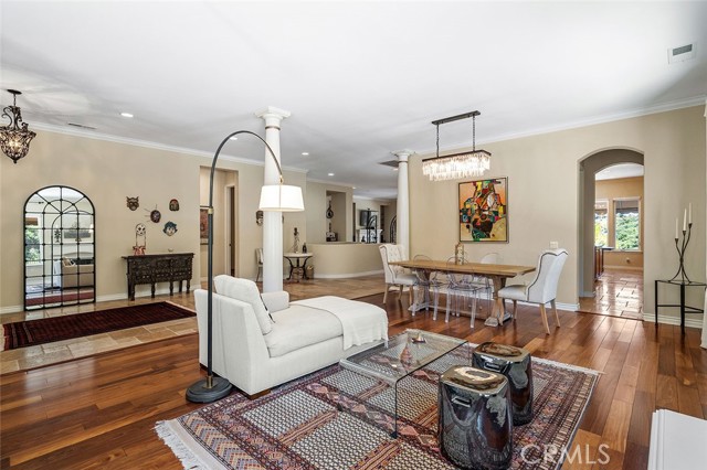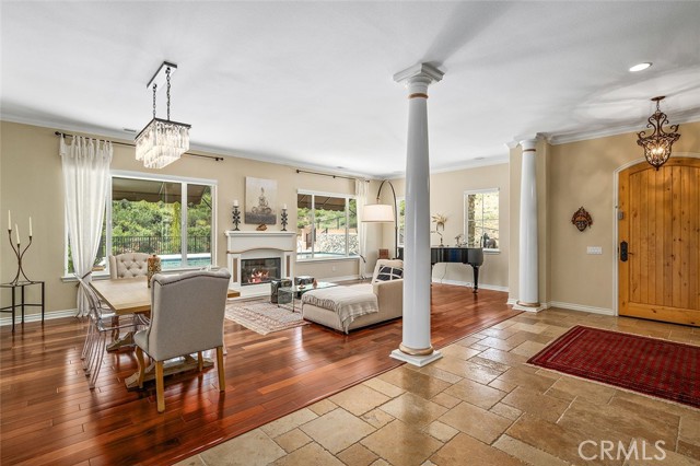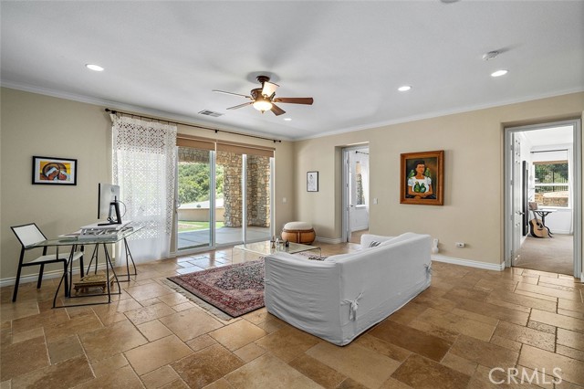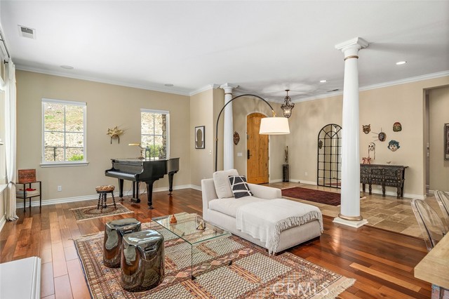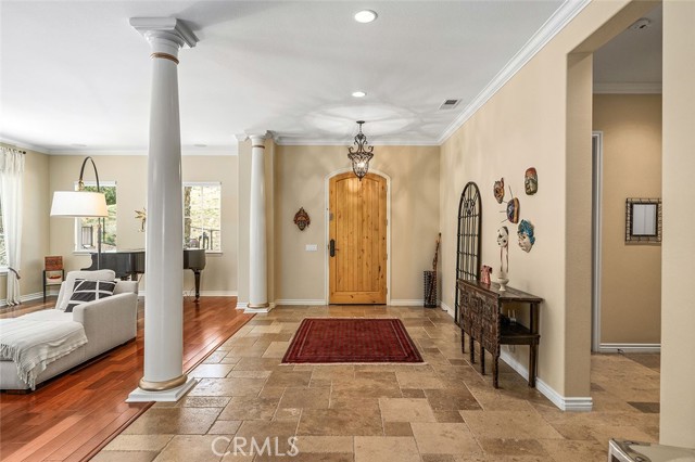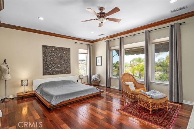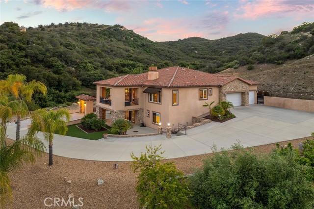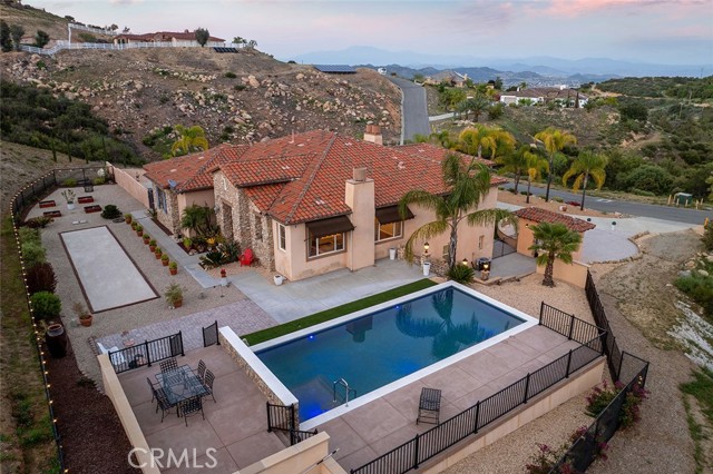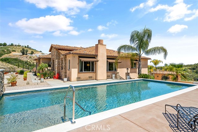 PERFECT LOW-MAINTENANCE ESTATE!!! A WONDERFUL COMBINATION OF PRIVACY, MULTI-GENERATIONAL USE, LOW MAINTENANCE & TURNKEY LUXURY IN LA CRESTA! This home is one of the rare opportunities on the Santa Rosa Plateau to own 5 acres, but without the maintenance. “Lock-and-Leave” properties here are rare, making this a perfect weekend retreat, family vacation estate, or full-time residence for those who want the ultimate in privacy and serenity, yet not wanting the responsibility of working the land. This beautiful estate offers a mature fruit orchard and pristine garden area, with most of the manicured grounds on low-maintenance drip systems, high-end turf, tasteful hardscape and room to further expand the agriculture, if you desire. There is also ample room for an ADU, pool house or workshop. The home’s unique floorplan is conveniently set up as two independent spaces - The primary floor hosts the main living areas, dining room, outdoor living room balcony, ensuite primary bedroom, laundry, 3-car garage and chefs’ kitchen with high-end appliances, butlers pantry and extra-large walk-in pantry. Down a stairway, accented by a custom iron gate, you will find another living room, 3 additional bedrooms, massive closets, and a spacious gym, which would also make a great theater room. From the lower level, walk out to the private patio and access the grounds, which include an authentic bocce ball court and fabulous pool with dining deck. The entire estate (inside and out) is equipped with sound and alarm systems, high ceilings, and on-trend details, making it not just turnkey luxury, but a festive home to share with friends and family. Expansive views, almost no traffic, peaceful location, and wide-open spaces with lots of parking compliment this INCREDIBLE TURNKEY ESTATE! *****SANTA ROSA PLATEAU: 5-acre minimum parcels (10-acre minimum. in SR West), just minutes to schools, restaurants, hospitals, grocery stores, 15 Fwy & Temecula Wine Country. Enjoy this peaceful ranch community w/no commercial businesses, robust social activities, miles of private community trails & 1000s of acres of Ecological Reserve…All less than 1.5 hours from LA, SD, OC, Palm Springs & Big Bear. Discover the country, yet convenient, lifestyle of La Cresta, Tenaja & the Communities of the Santa Rosa Plateau!