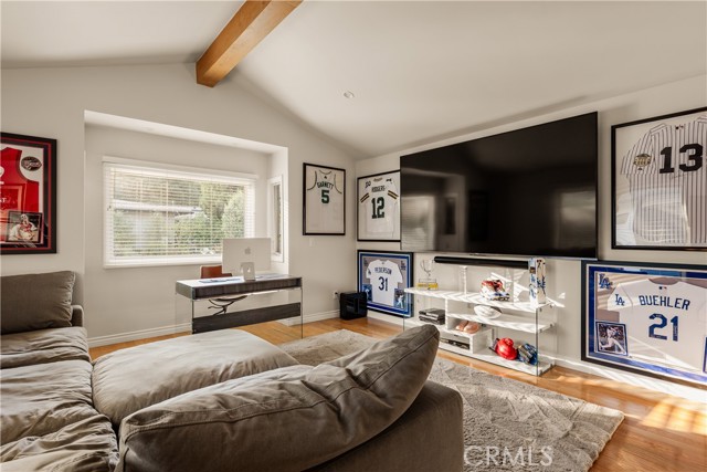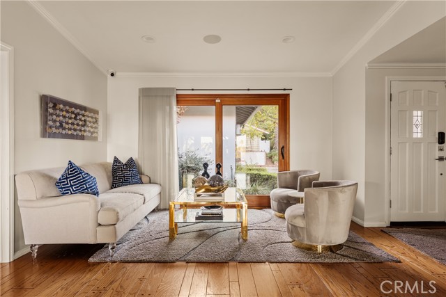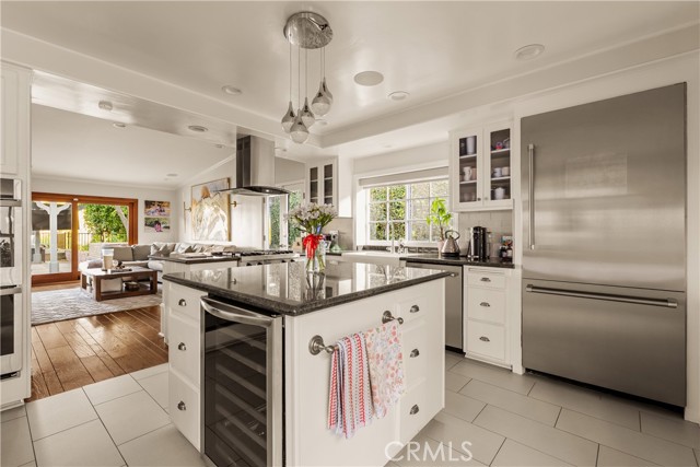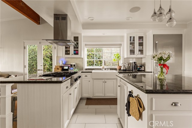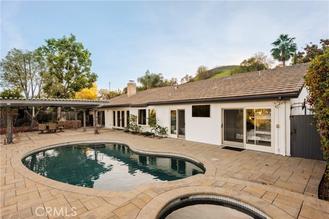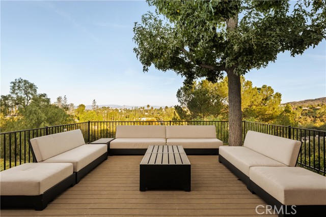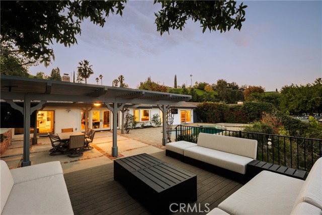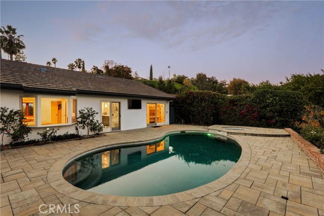 Stunning single-level 4-bedroom, 3.5-bath home offering approximately 3,000 square feet of refined, comfortable living space, ideally situated south of Ventura Blvd on a quiet Woodland Hills cul-de-sac. Filled with natural light and designed for both warmth and functionality, this private residence features vaulted wood-beam ceilings, recessed lighting, built-in speakers, and a charming fireplace anchoring the spacious living and dining areas. The formal dining room flows seamlessly into the family room and kitchen, creating an effortless layout perfect for everyday living and elevated entertaining. The generous island kitchen serves as the heart of the home, offering excellent workspace and storage with granite counters, stainless steel appliances, a Thermador refrigerator, Viking range, wine cooler, and new double ovens — plus a cozy breakfast area overlooking the backyard. The spacious primary suite is a peaceful retreat, while a versatile in-law suite offers a private entrance, walk-in closet, sitting area, convenient kitchenette, and its own en-suite bath with dual vanities and a marble walk-in shower, creating a spa-like experience. The backyard is an entertainer’s paradise with serene views, a sparkling saltwater pebble-tech pool and spa (updated with new tile and pavers), a pergola, a built-in BBQ with refrigerator, and a custom deck designed to capture beautiful mountain vistas. Located minutes from Warner Center, Calabasas shopping and dining, and highly sought-after Woodland Hills Elementary Charter for Enriched Studies school district.