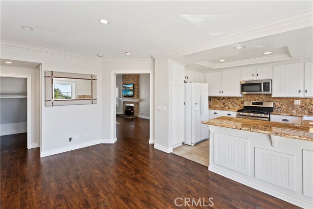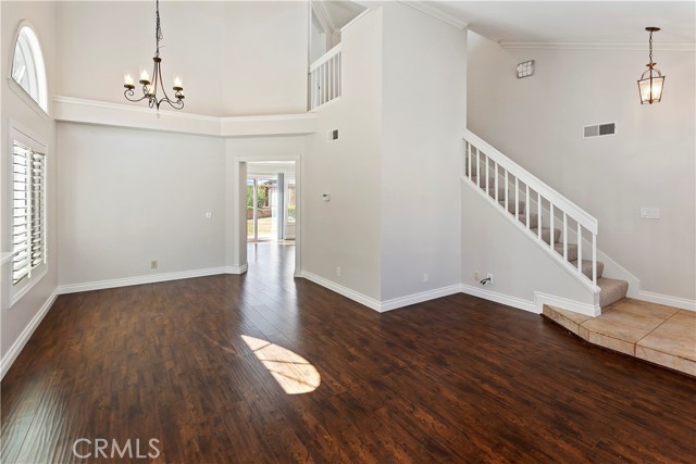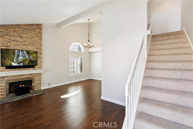 Highly upgraded with attention to care!! New paint and carpet and well maintained home with superb sunset views of city lights and open space. Entry- vaulted ceilings with crown moulding throughout, hardwood flooring, and newly remodeled fireplace with stone accents reaching the ceiling. The cottage-modern Kitchen has wains coating, recessed ceiling with custom lighting, french farmhouse sink, and many newly upgraded features that is inviting to any person that loves to cook. Bar stool seating in the kitchen allows easy entertainment while preparing a meal. Adjacent to the kitchen is a dining room and rear entry to back yard, opening lots of light. Upstairs, master bath has newly custom lighting with fan, newly remodeled bathroom with travertine stone and HUGE dual shower. Jack and Jill bathroom adjoin bedrooms for easy access. Brand new HVAC system delivers both AC and heat efficiently. Large rear yard flows to a gated fence where you can enjoy picturesque sunsets over the City lights of Irvine, rolling hills, and open space. Talk about great flow!!!! Gardner included.