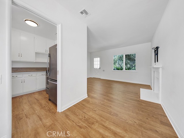 Tucked into the desirable Crescenta Highlands neighborhood of Glendale, this charming 2-bedroom, 1-bath home blends timeless character with everyday comfort and undeniable curb appeal, freshly painted and thoughtfully refreshed to feel truly move-in ready. Step inside to a welcoming living room anchored by a classic white brick fireplace, the perfect focal point for cozy evenings. Gorgeous wood plank flooring flows seamlessly throughout, creating warmth and continuity from room to room. Just beyond, the living space opens effortlessly into a quaint dining area, where a large sliding window frames views of the backyard and fills the space with natural light. The adjacent kitchen is both functional and inviting, featuring granite countertops, crisp white cabinetry, and stainless-steel appliances — an ideal setting for everything from casual mornings to relaxed dinners at home. The primary bedroom is light, bright, and beautifully prepared with mirrored closet doors that enhance the airy feel. The secondary bedroom offers a peaceful retreat complete with a walk-in closet. The bathroom is fresh and clean in white tones, featuring a shower-tub combination and a single-sink vanity with storage. Step outside to a spacious, private backyard designed for true California living. Mature orange, lemon, and grapefruit trees provide beauty and seasonal bounty, while the expansive patio sets the stage for alfresco dining, entertaining, or simply unwinding under the open sky. Additional highlights include central heating and A/C, ceiling fans in both bedrooms, an in-home washer and dryer, and a one-car garage. Ideally located near Montrose Shopping Park, Crescenta Valley Park, New York Park, and Dunsmore Park, with convenient access to dining, shopping, and outdoor recreation — all within the boundaries of highly regarded La Crescenta schools.