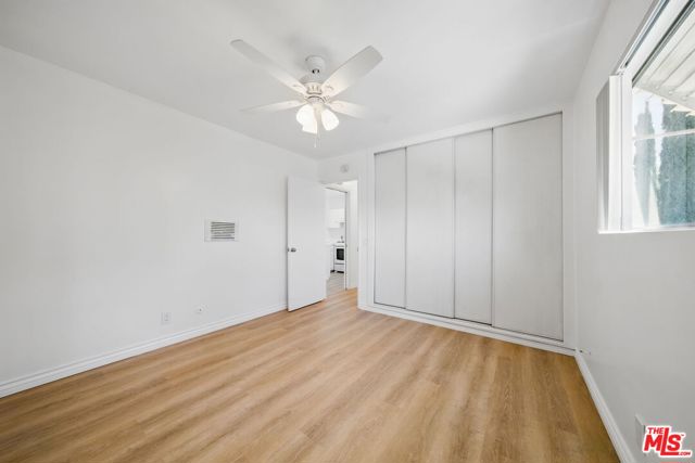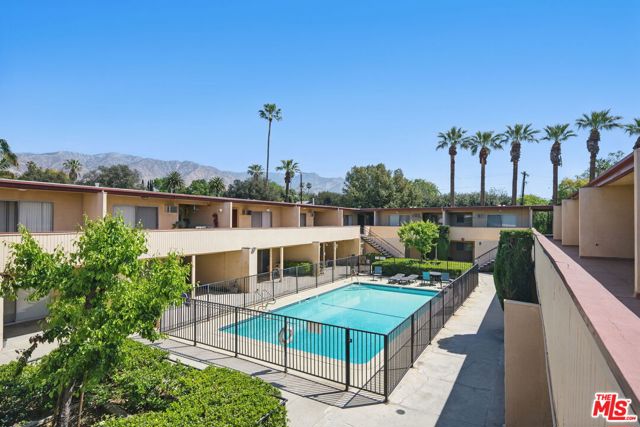 TOP FLOOR one bedroom remodeled unit in a well maintained secured open air mid century building with lots of light and a pool. Other features include AC, lots of storage, new wood vinyl floors throughout, an outdoor patio and one assigned covered parking spot that is gated. Community laundry on-site. PET FRIENDLY.
