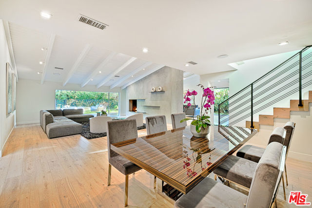 Stunning Mid-Century Modern farmhouse with seamless 6,500 Sq. ft. of indoor/outdoor living. This brand new remodeled home is located on a quiet cul-de-sac in prime Trousdale Estates in Beverly Hills. The 1st floor offers a beautiful, bright open floor plan w/ high ceilings at the entry, recessed lighting throughout, and hardwood & tile flooring. A gourmet kitchen w/ high-end appliances opens to a private, grassy patio. A dual-sided fireplace centers the living room & family room, leading to a magnificent, private backyard w/ pool, sun deck, & fire pit lounge. The backyard features lush landscaping w/ mature, architectural trees & complete privacy. The 2nd floor has an expansive entertainment room with a patio overlooking majestic views! There is a 5th bedroom/ office on the 2nd-floor w/ full bath & wet bar. This beautiful property has its own unique touches, and meticulous attention to detail, and is the quintessential example of California Indoor/Outdoor living. Available for long term rentals and/or short term rentals with flexible lease terms.
