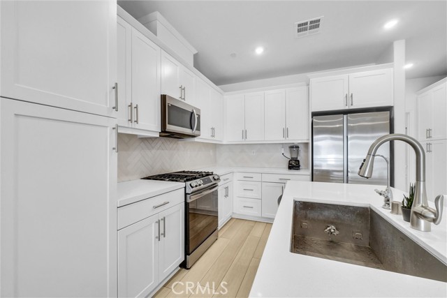 Location, Location, Location! Paid-off solar system and upgraded luxury vinyl flooring set the tone for this stunning tri-level 2024-built, nearly new 3-bedroom, 3-bath condominium offering approximately 1,480 sq. ft. of modern living. Each bedroom features its own private bath, including two ensuite bedrooms, providing ideal comfort and privacy. The open-concept layout showcases a granite kitchen with center island flowing seamlessly into the dining and living areas, perfect for everyday living and entertaining. A versatile downstairs space is ideal for a home office or flex area, while the spacious primary suite boasts dual walk-in closets. Enjoy a generous private balcony and the convenience of a tandem garage. Located in a gated community in desirable La Verne, near top-rated schools, abundant shopping and dining, easy access to Interstate 210, and just minutes from University of La Verne, this home offers the perfect blend of comfort, style, and location.