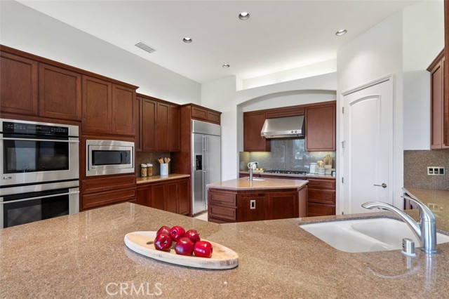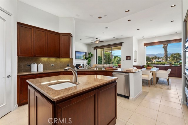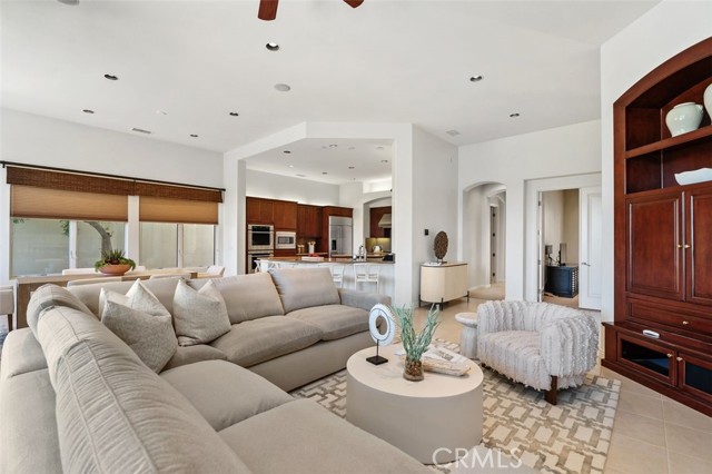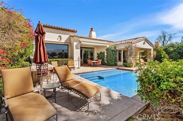 Located within the prestigious guard-gated community of Toscana Country Club in the heart of Indian Wells, this exceptional single-story residence offers resort-style living just minutes from El Paseo’s world-class shopping and dining and the renowned Indian Wells Tennis Gardens. Toscana Country Club provides an unparalleled lifestyle with two championship golf courses, pickleball and tennis courts, a state-of-the-art wellness center, fitness facilities, and a vibrant calendar of social and recreational activities. Situated along the 6th fairway of Toscana’s North Course, this highly desirable Model 622 residence offers effortless indoor-outdoor living with 4 bedrooms plus an office or den and 4.5 bathrooms. Designed around a spacious great-room concept, the home features a gourmet kitchen with rich custom cabinetry, granite countertops, an island with vegetable sink, and bar seating that seamlessly opens to the dining area and family room with fireplace—creating an ideal setting for both intimate gatherings and larger-scale entertaining. The primary suite is a private retreat with sliding glass doors opening directly to the backyard pool and jacuzzi, creating a true resort ambiance. The primary bath includes dual sinks and generous space for comfort and functionality. Three bedrooms and a den are located within the main residence, complemented by a detached casita offering a large guest bedroom and full bath—ideal for visitors or extended stays. Additional highlights include a three-car garage with epoxy-coated flooring and beautifully integrated outdoor living spaces overlooking the fairway, capturing the essence of refined desert luxury.